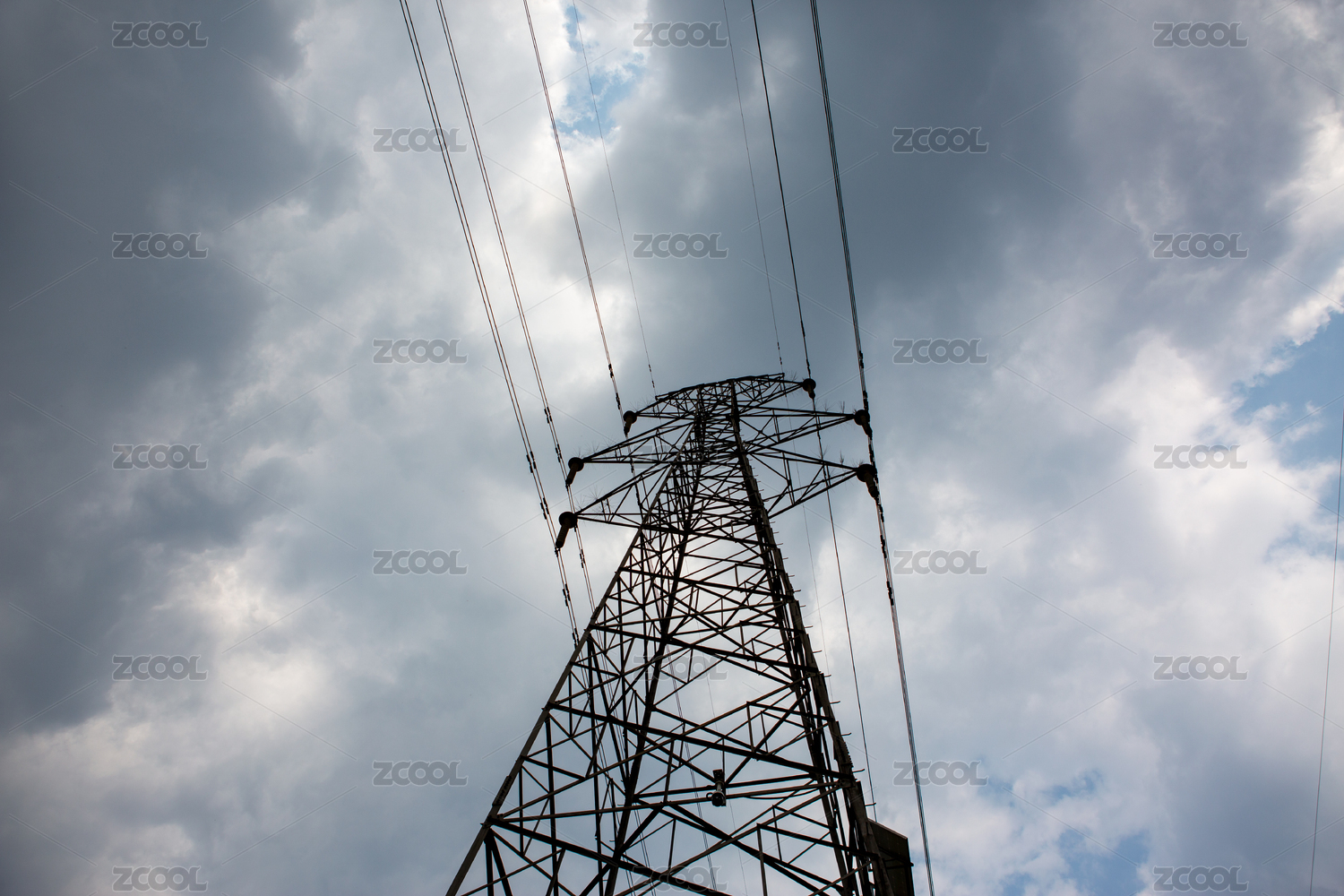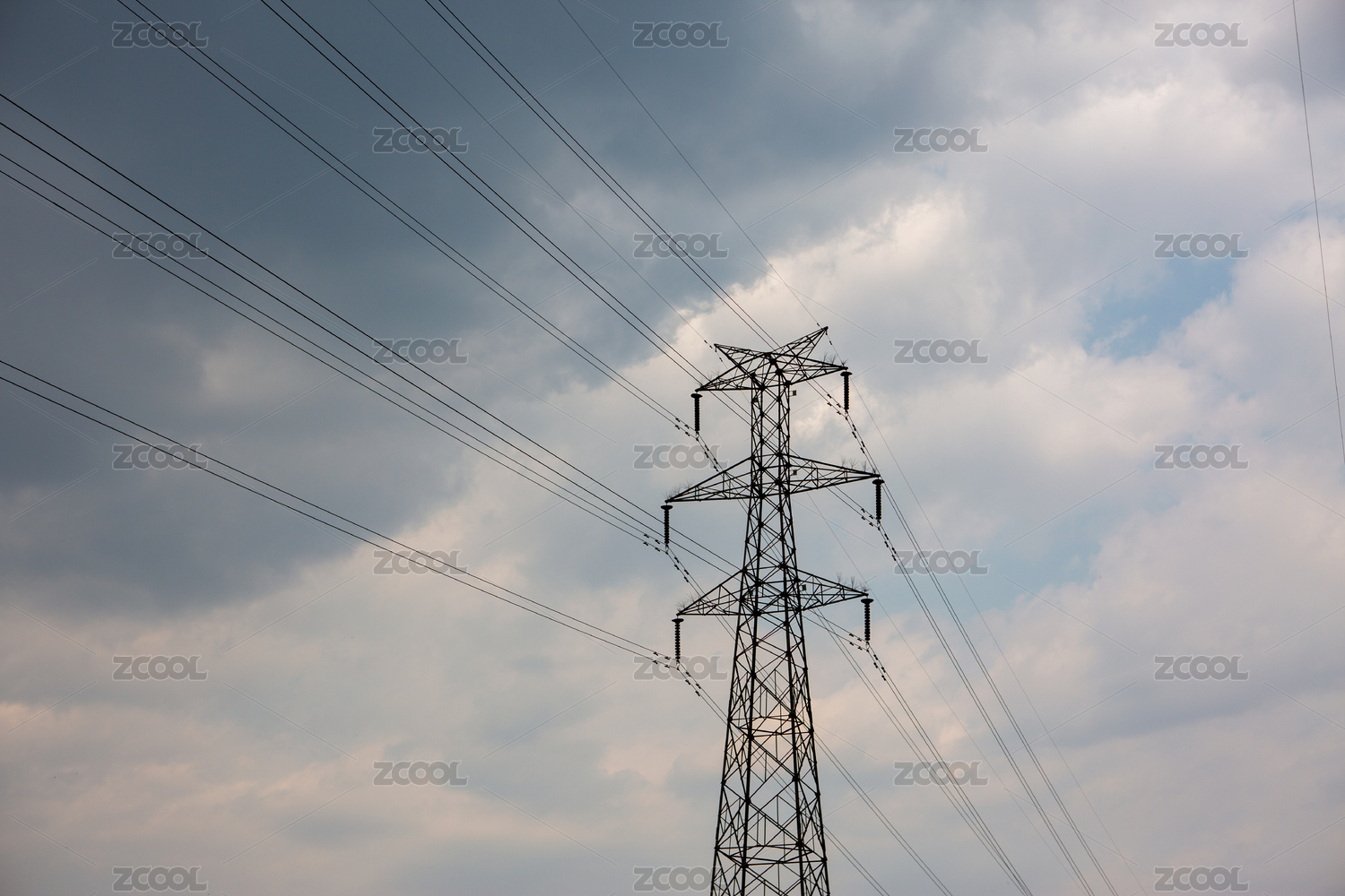 乌云密布中的高压电塔