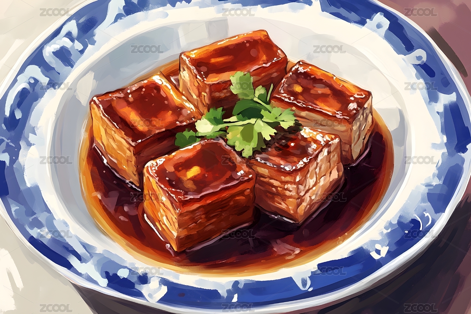 红糖糍粑,插画,食物,食品,中式,中国风,室内,桌面,木质,桌子