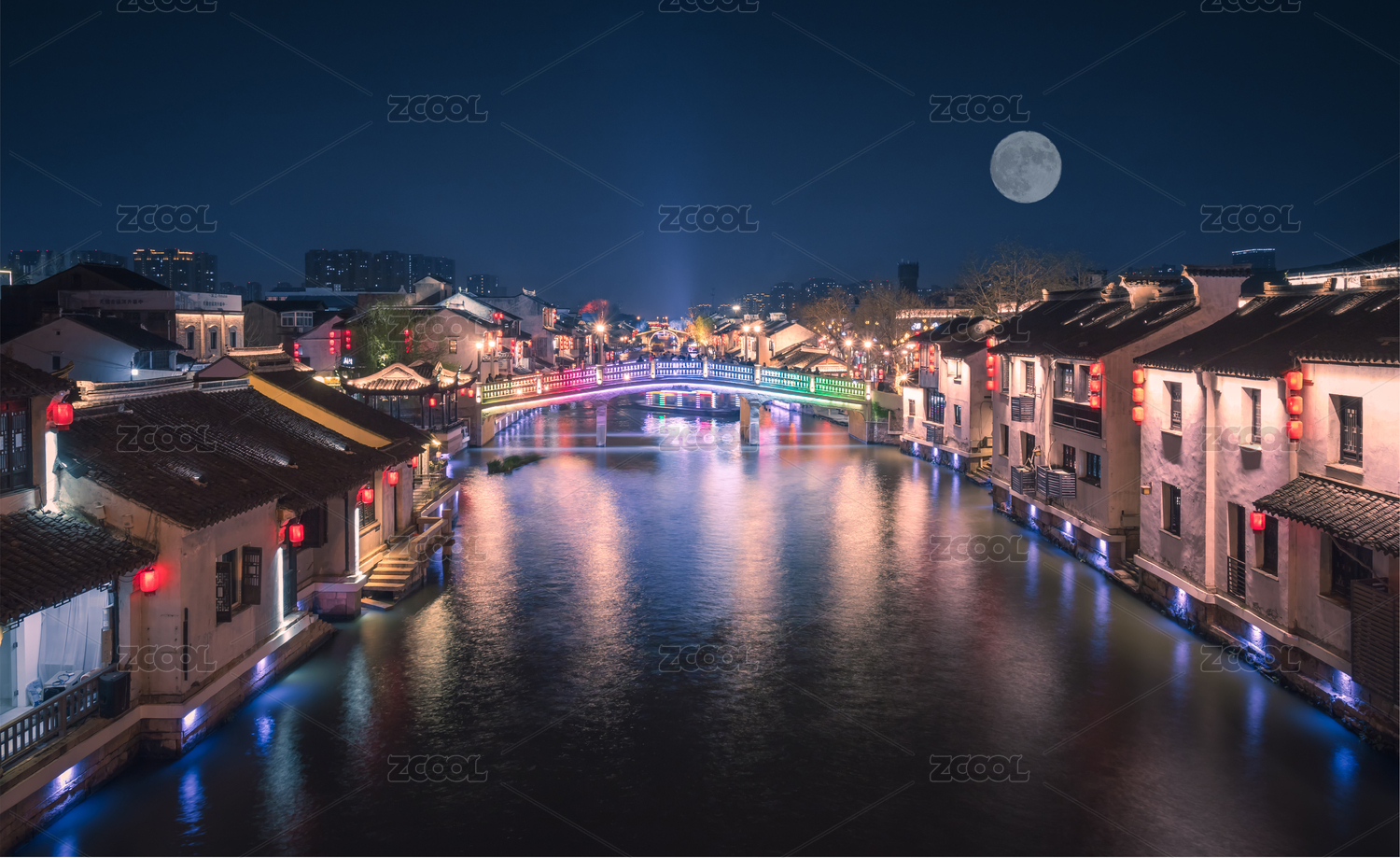 江苏,无锡,清名桥古运河,运河,城市,夜晚,夜景,风光,水乡,古镇
