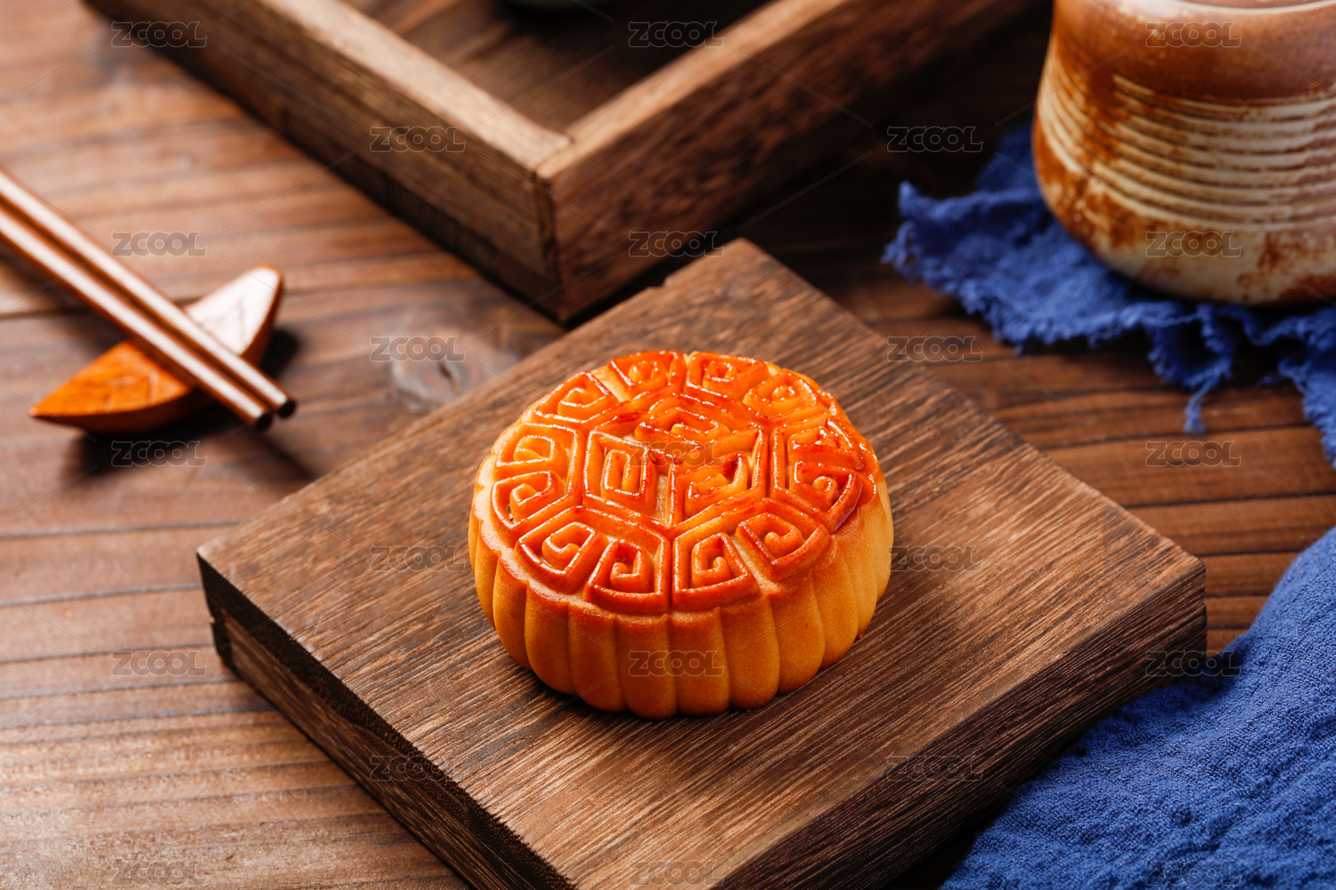 木背景上摆放的传统手工月饼