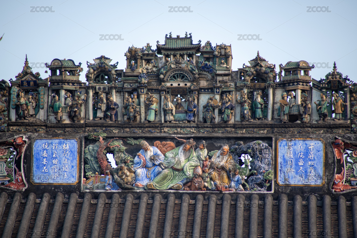 中国广东广州陈家祠堂灰塑陶塑艺术