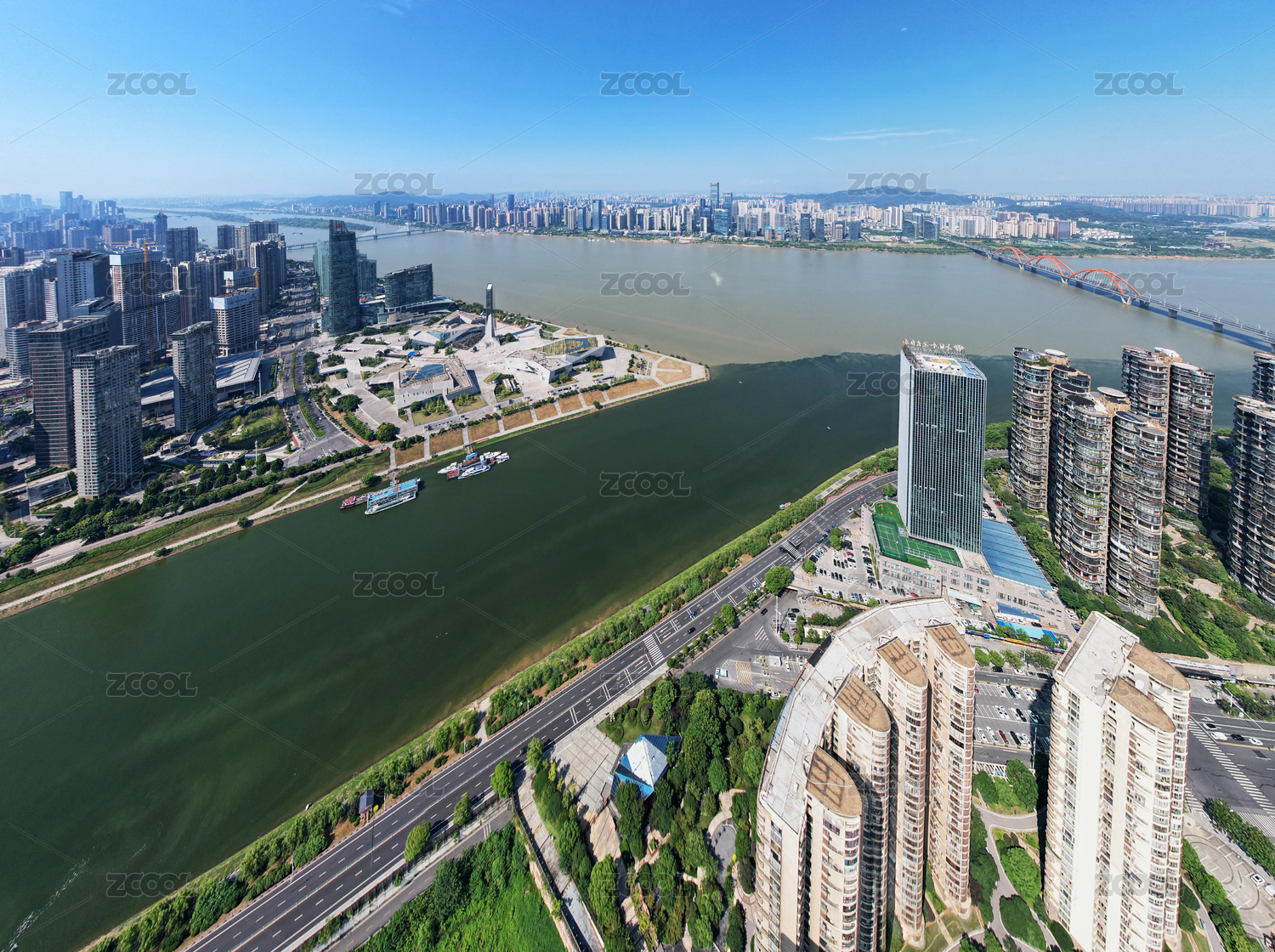 湖南省长沙市银盆岭湘江大桥航拍城市天际线