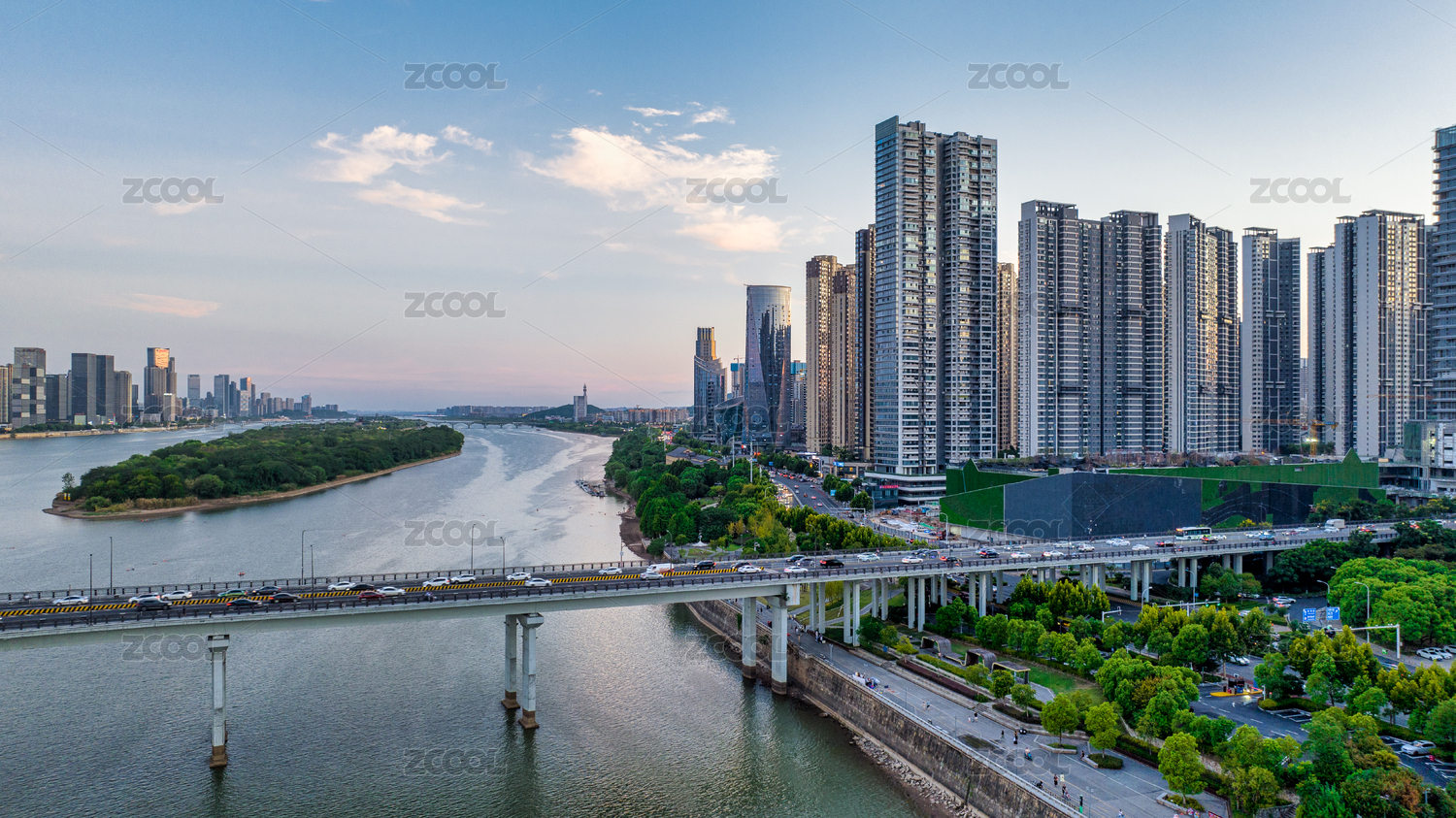 傍晚时分的湖南长沙湘江银盆岭大桥