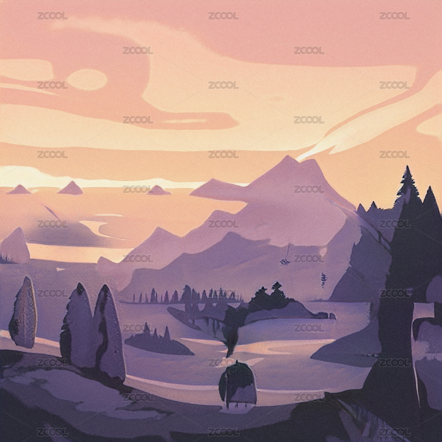 插画,风光,自然,天空,山脉,河流,河,大海,海洋,数目