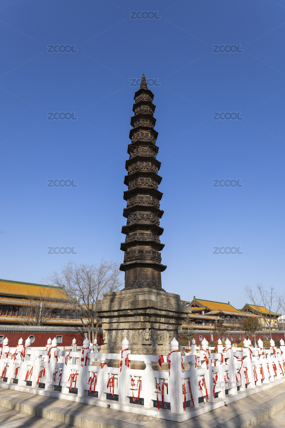 蓝天下的通州燃灯佛舍利塔与红墙灰瓦