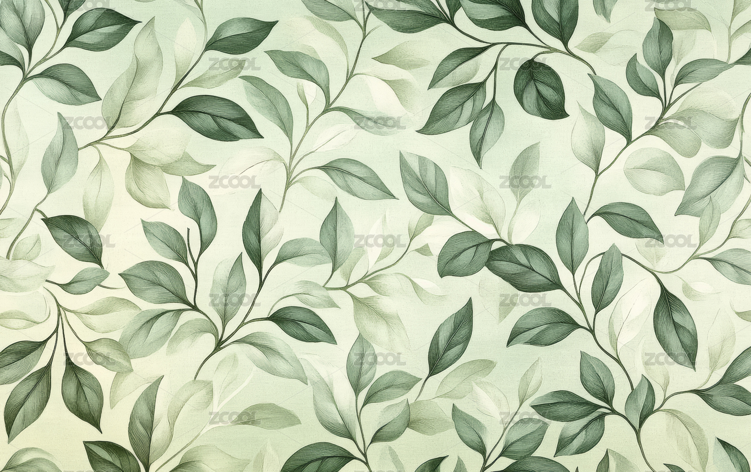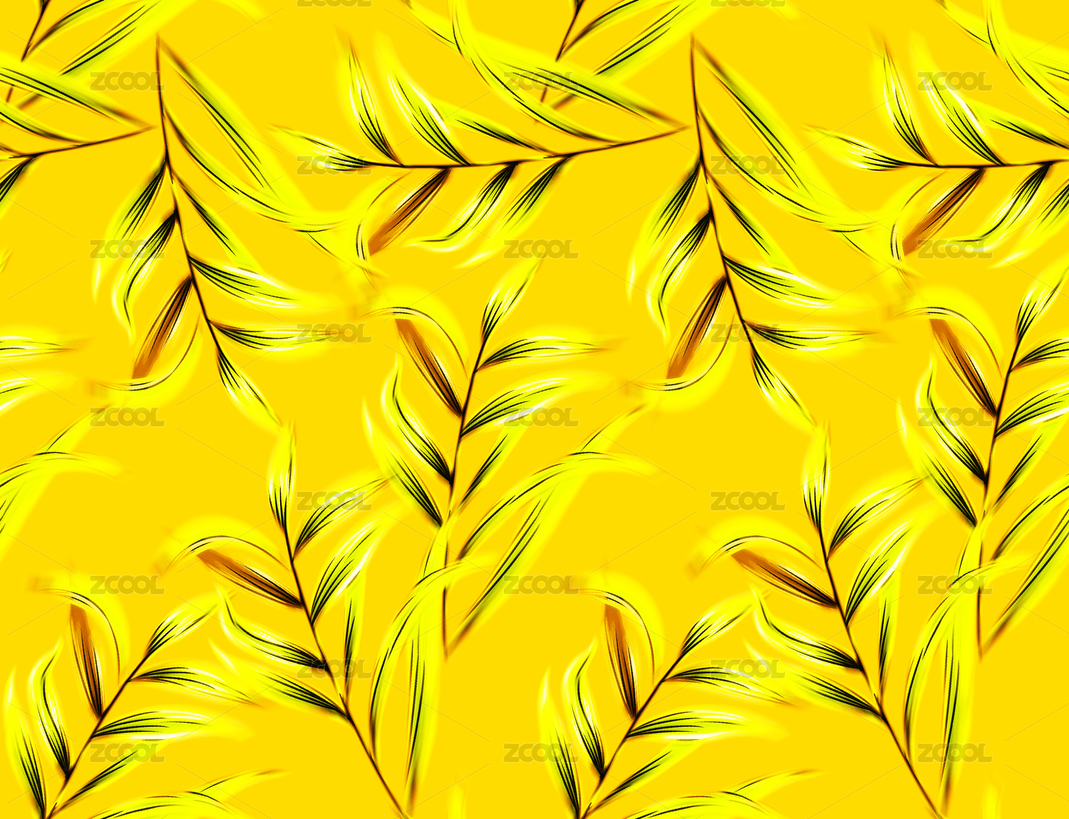热带图案无缝纹理手绘妖怪叶子水彩效果