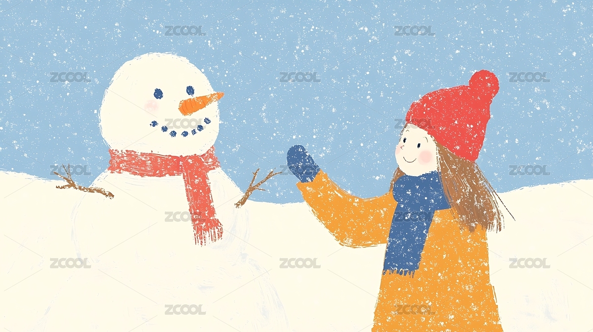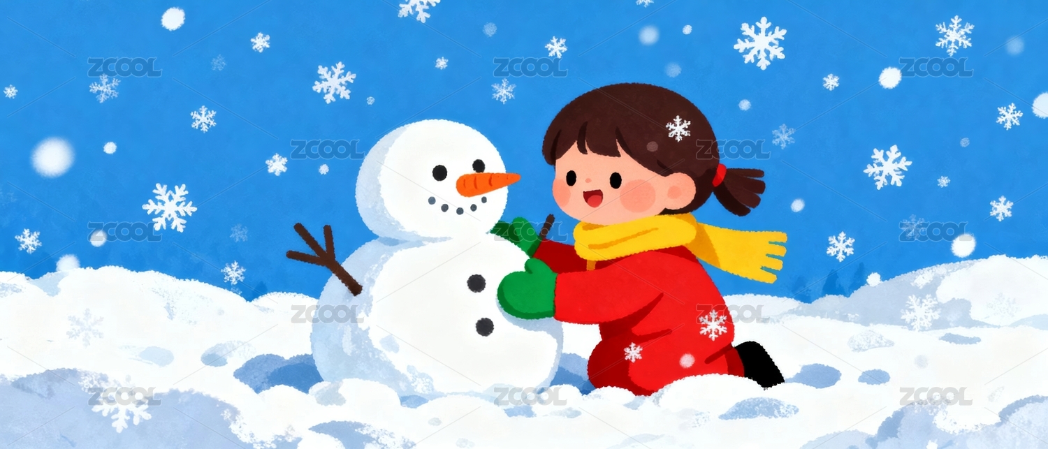 冬日雪景中,两女孩开心堆雪人,温馨又可爱