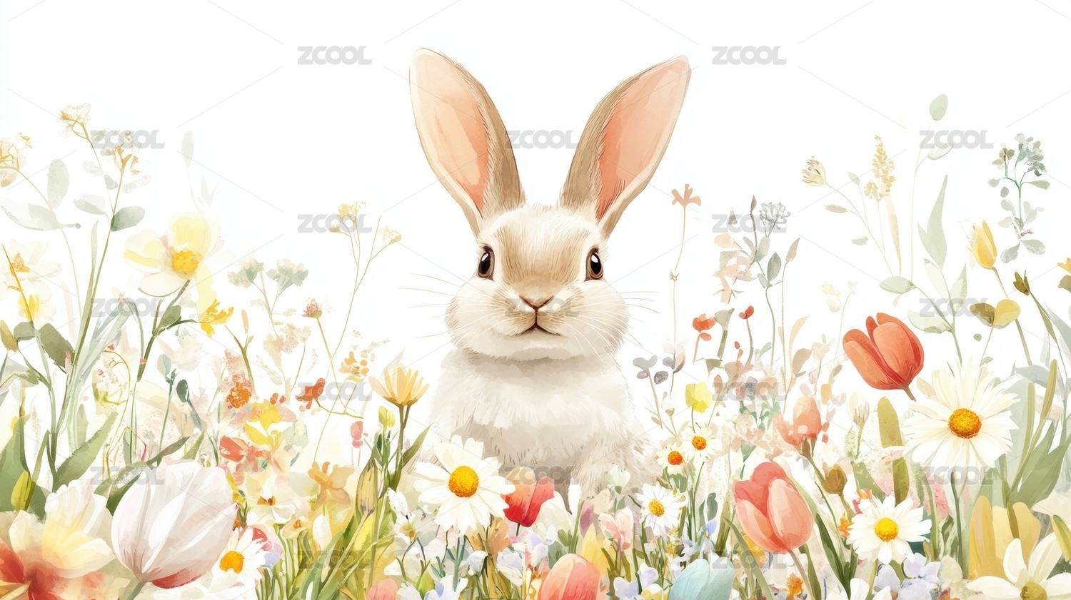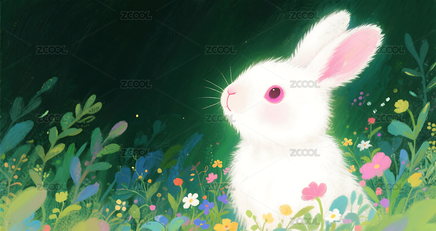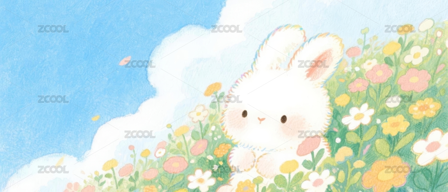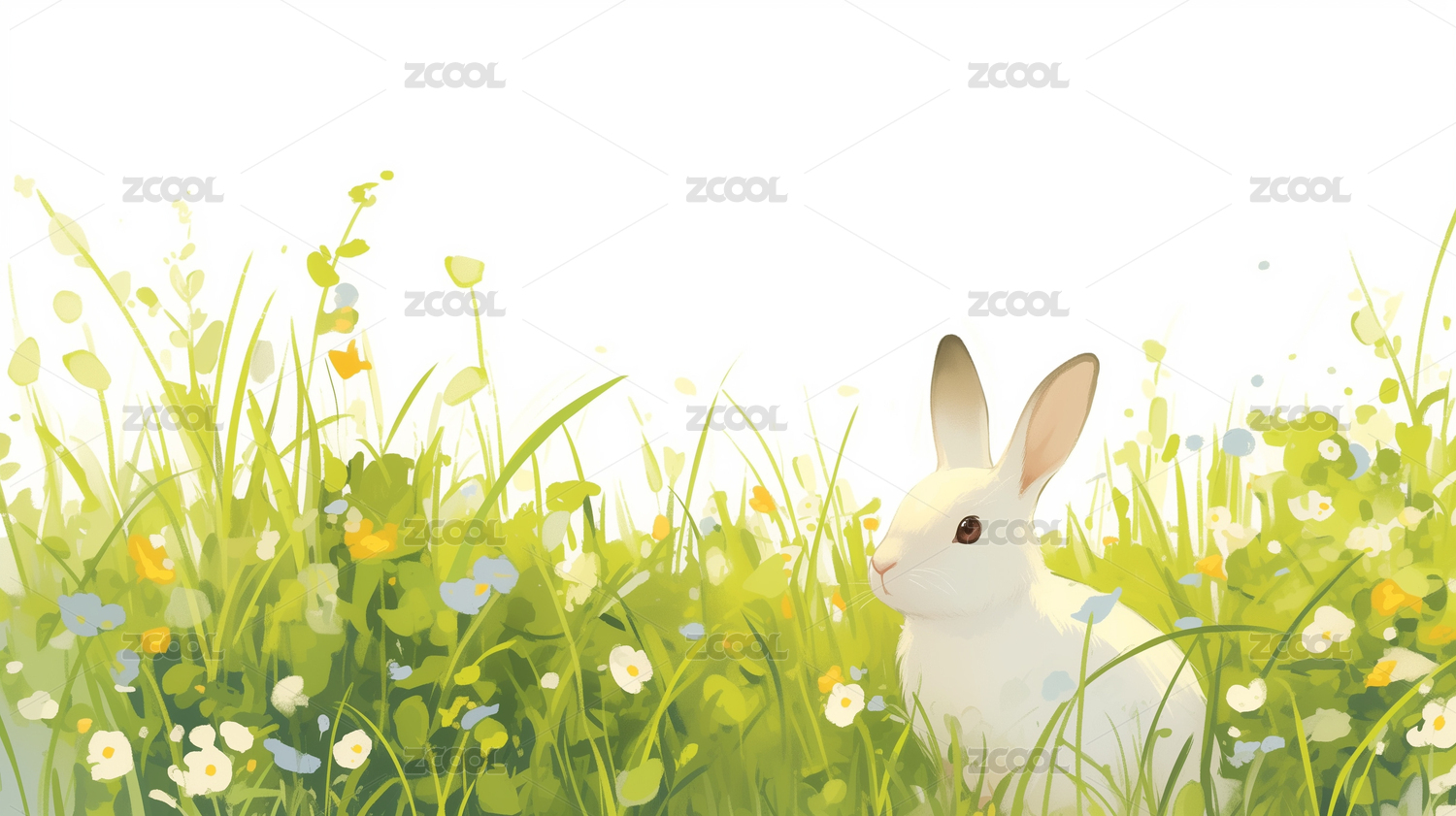 白天白底草原卧姿野兔白兔特写插画绘画手绘