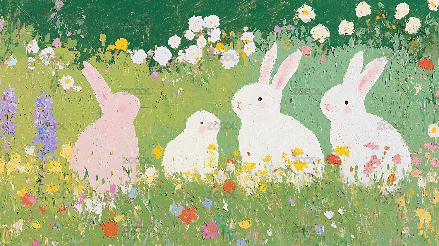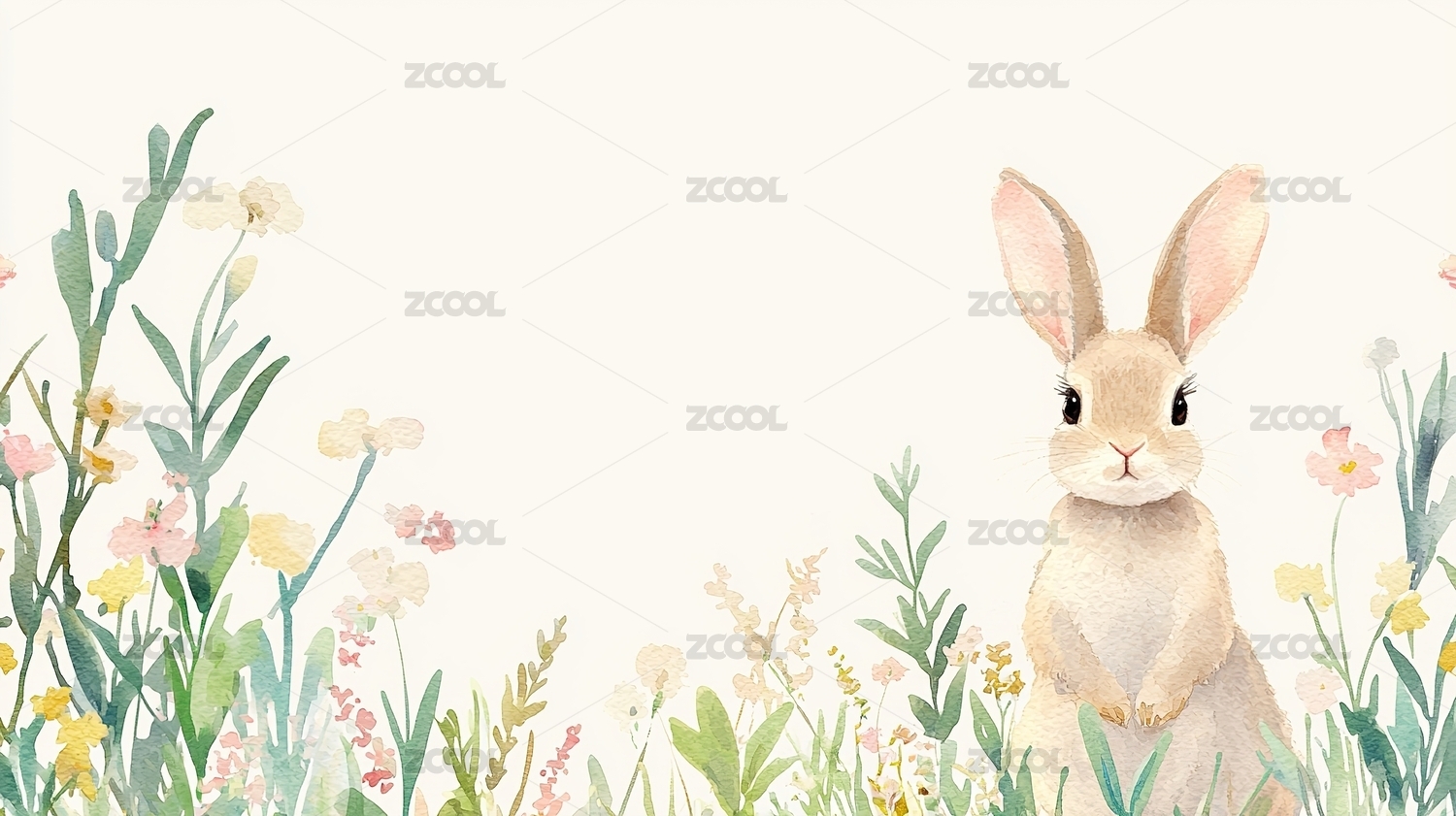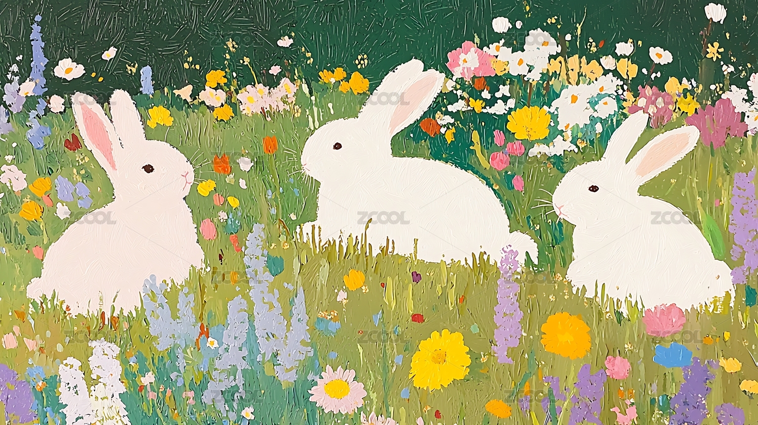 白天白底草原卧姿野兔白兔特写插画绘画手绘