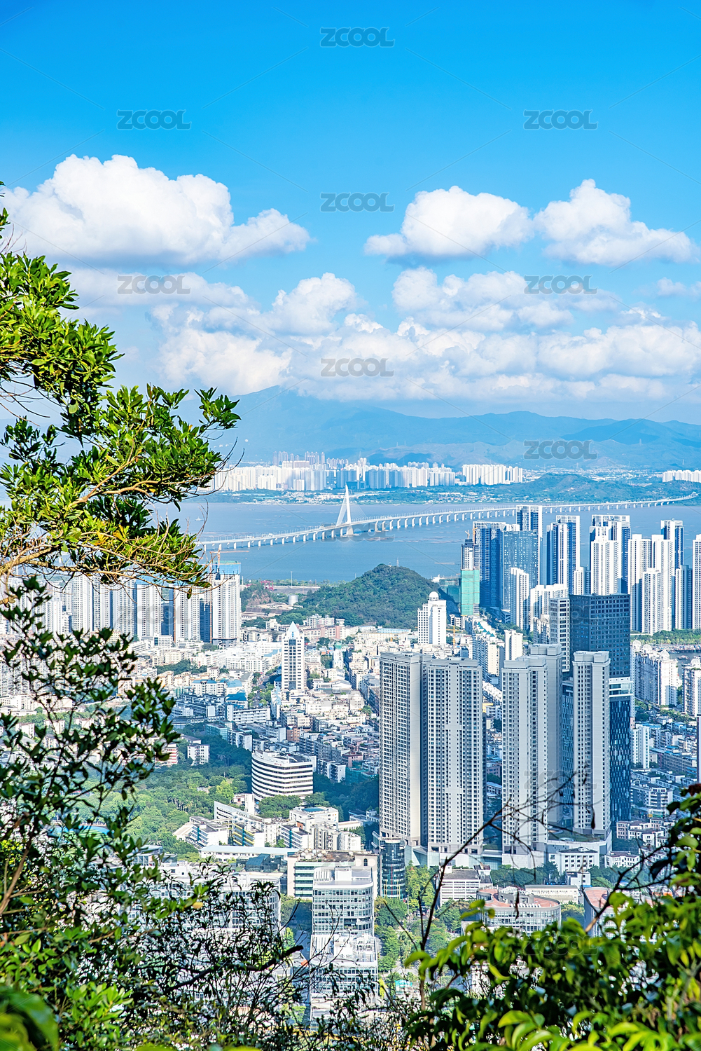 蓝天下的深圳城市和森林/羊台山森林公园风景