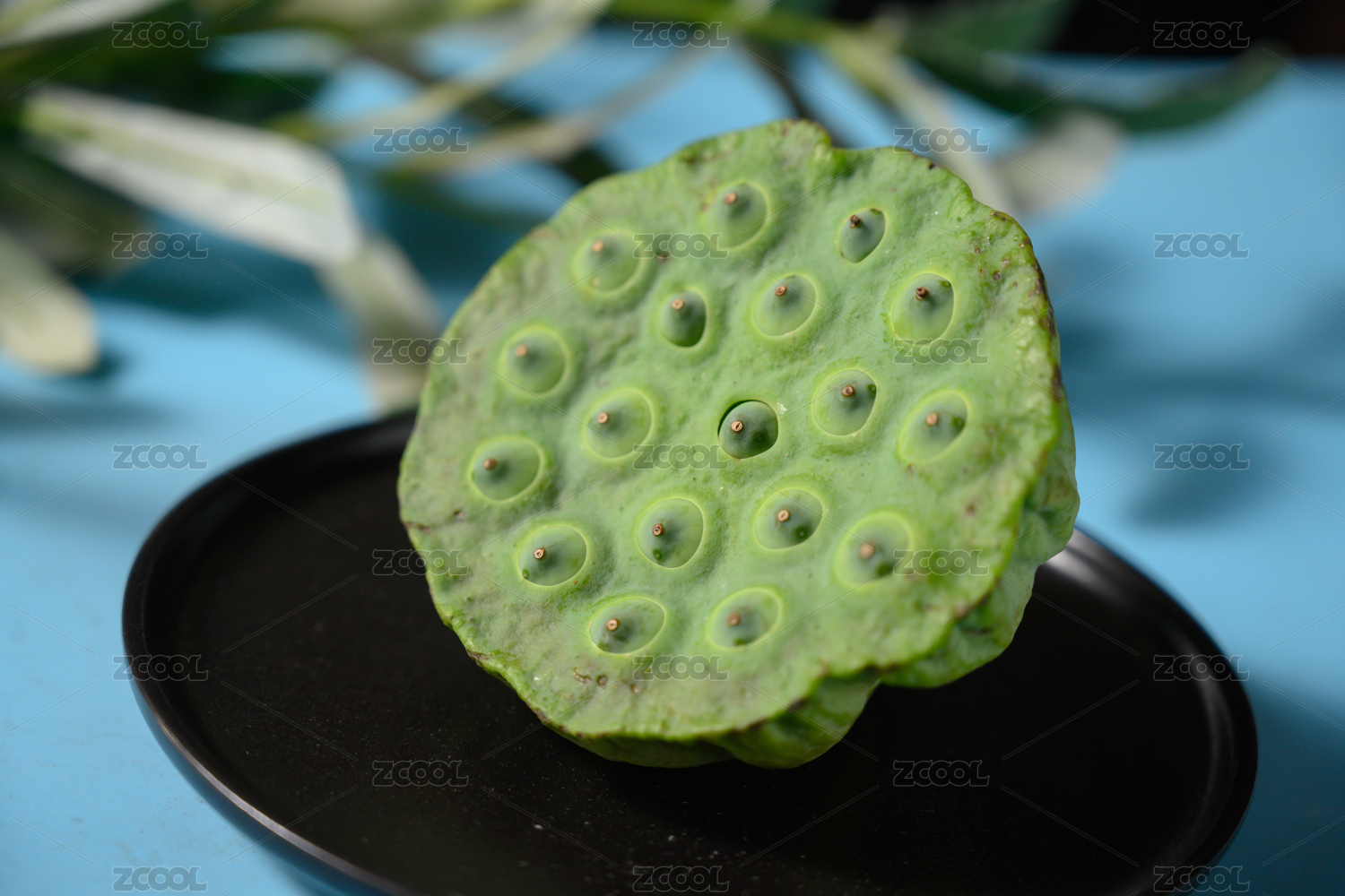 桌面上的盘子里的美味可口的新鲜莲蓬