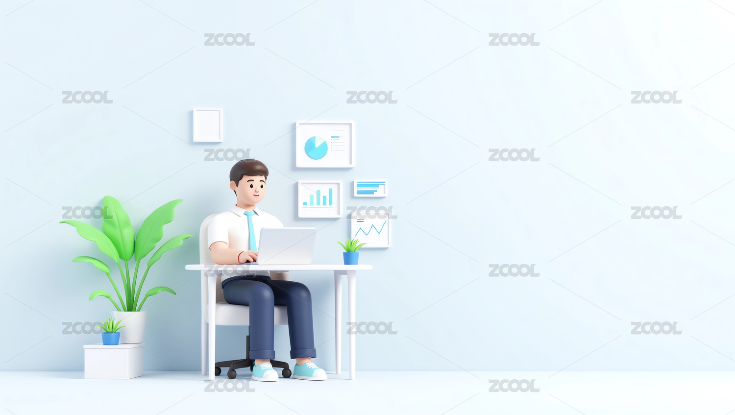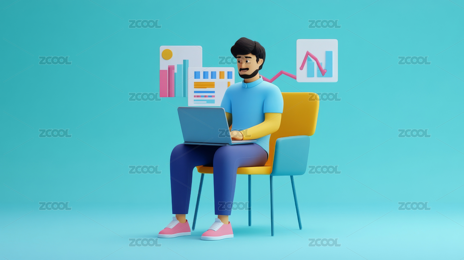 3d渲染舒适办公的卡通人物形象