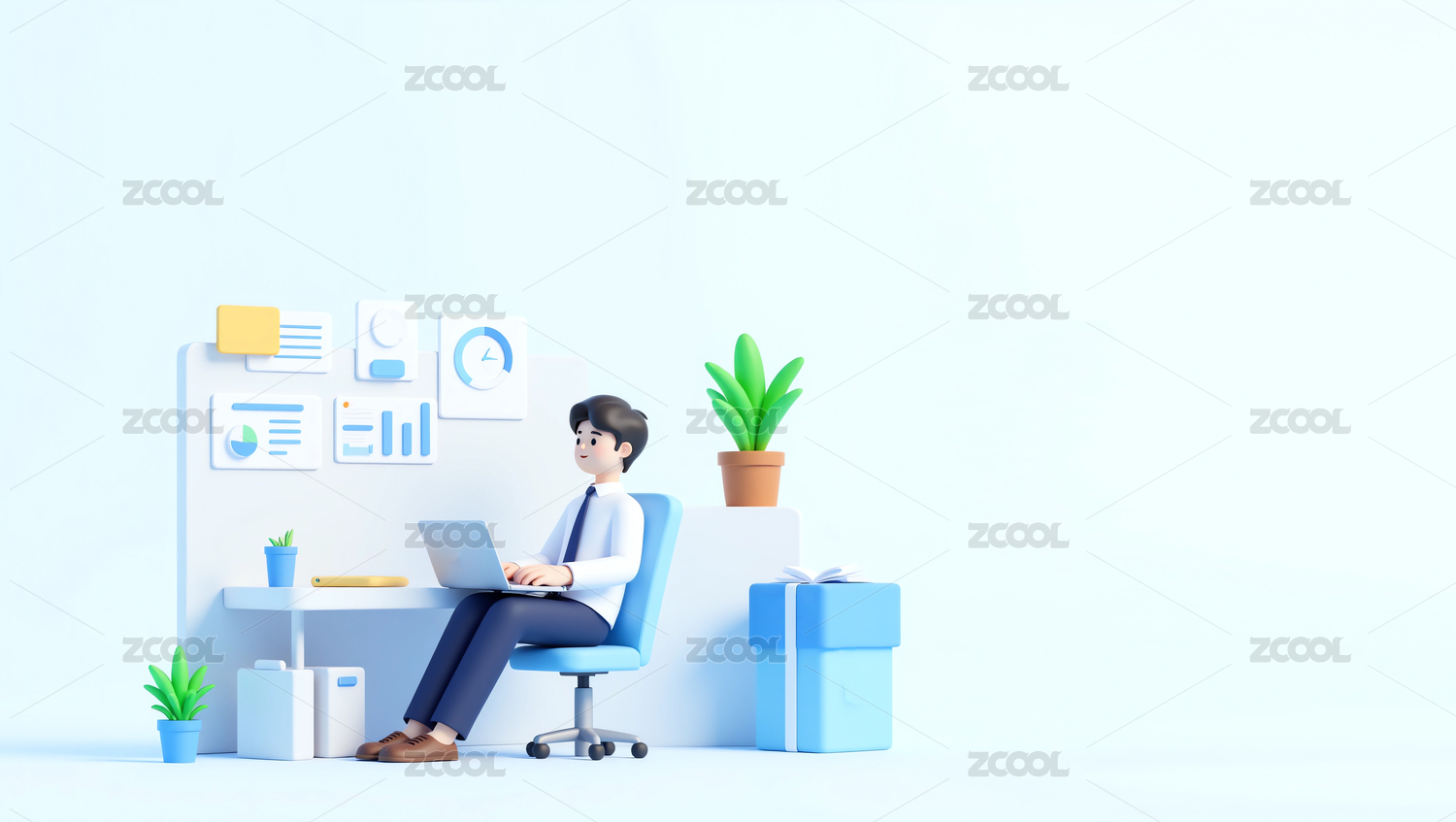 3d卡通人物商务概念场景