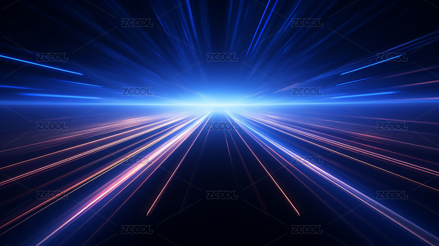 霓虹色光线纵向延伸消失在远方网速概念背景