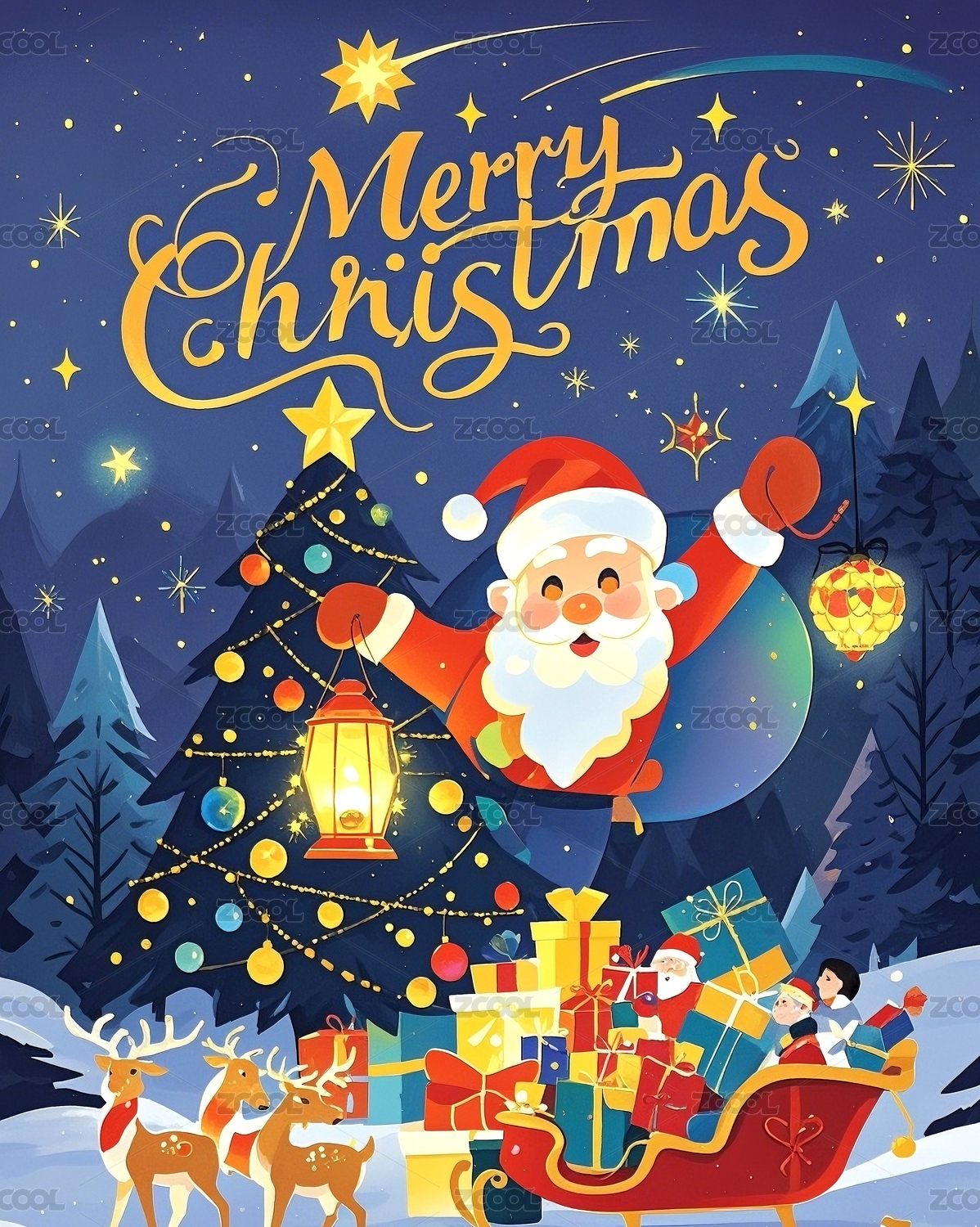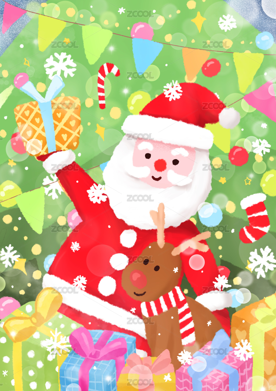 圣诞节圣诞老人送礼物平安夜快乐矢量插画