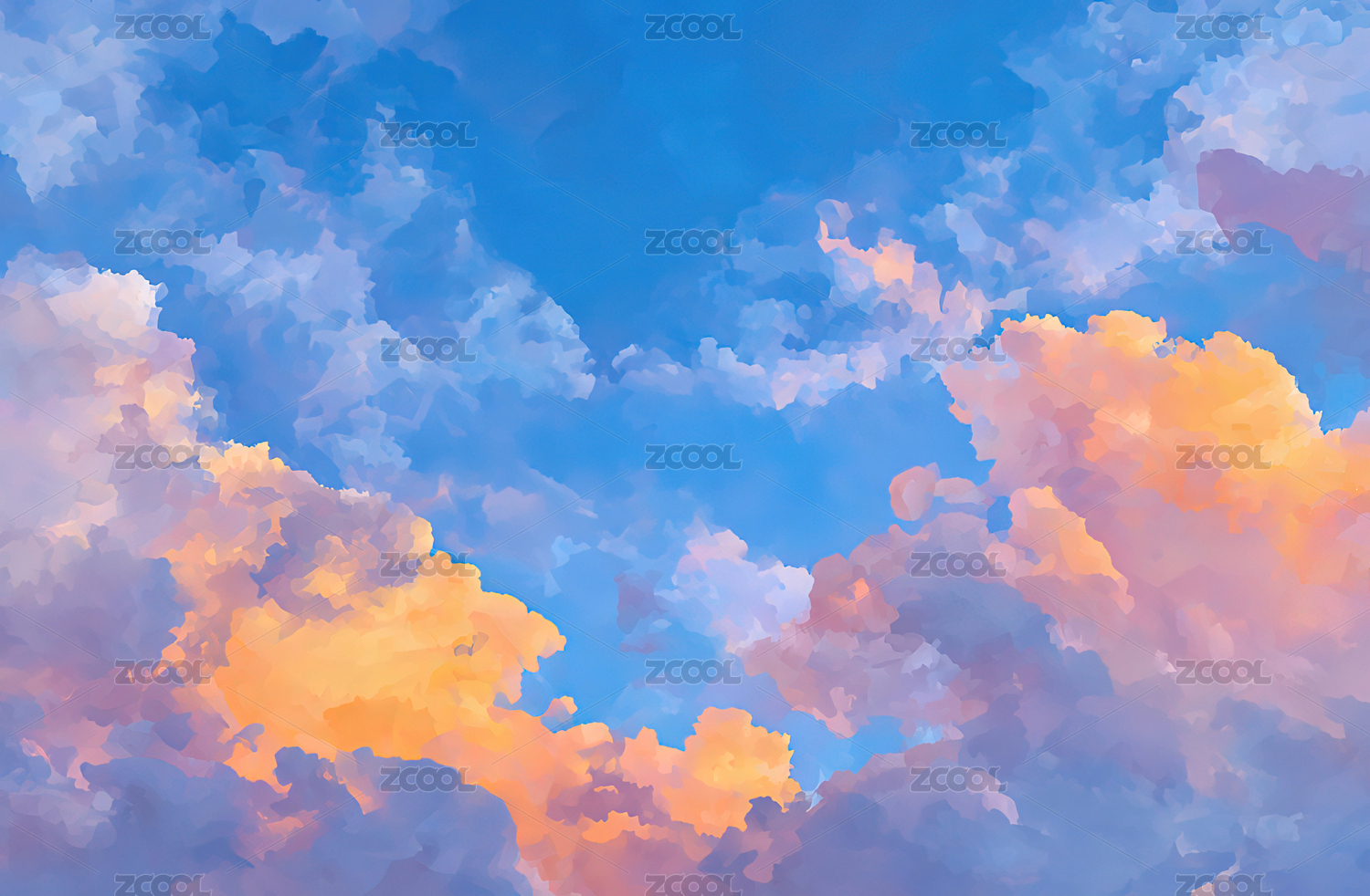 水彩风格抽象天空彩云PPT海报主视觉背景