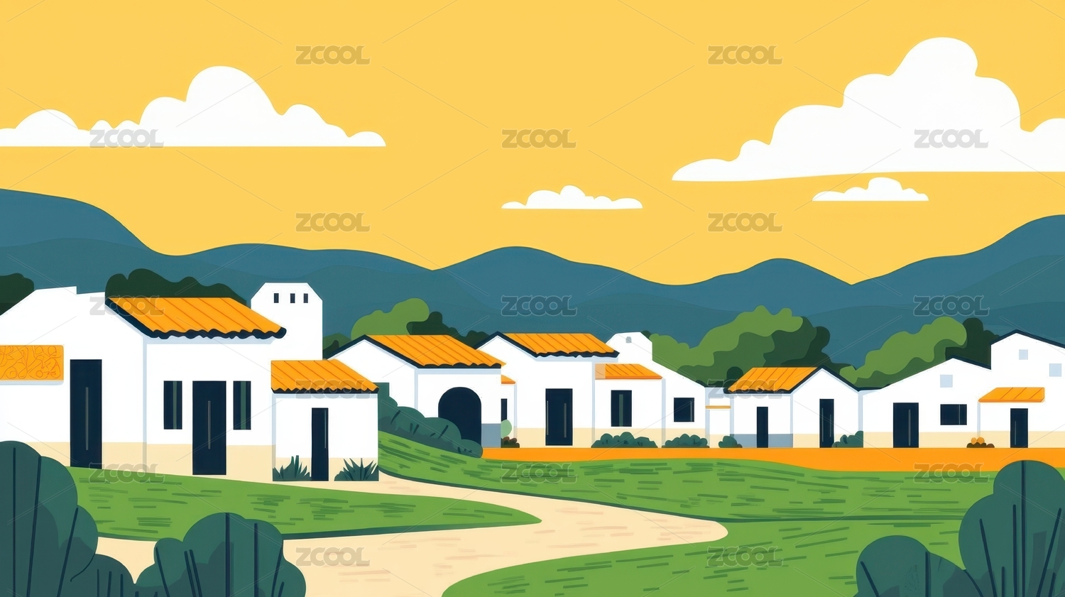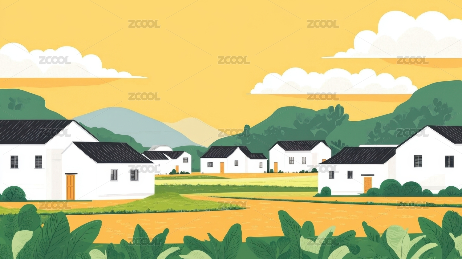 秋天秋季立秋秋分自然户外风景卡通漫画插画