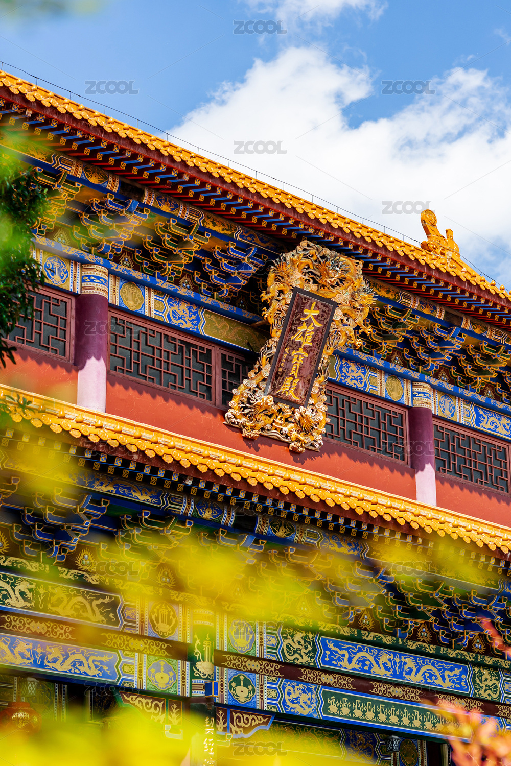 秋天寺庙银杏、黄墙、中式建筑特色