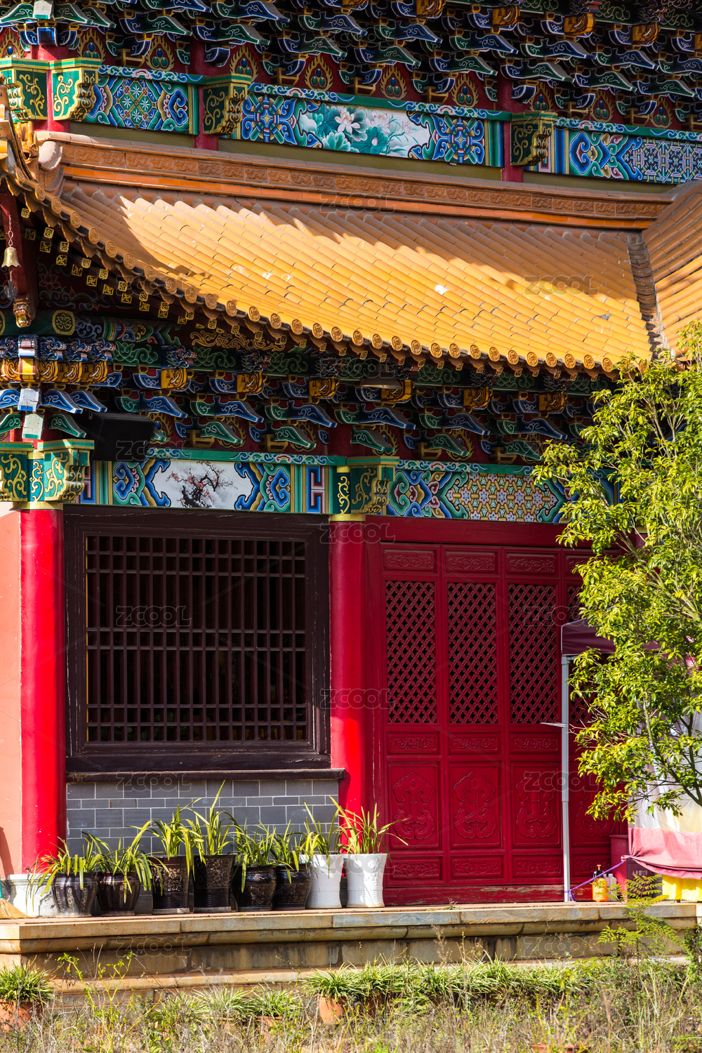 古寺黄墙旁的清幽景致