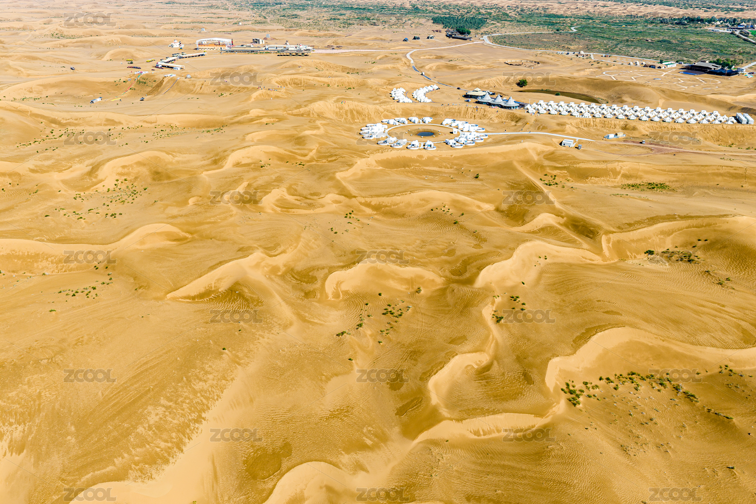 中国宁夏省中卫市腾格里沙漠航拍图