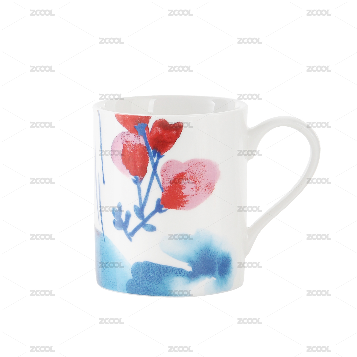 餐具,杯子,瓷杯,白色,水杯,瓷杯子,水平视角,空的,花纹,彩色