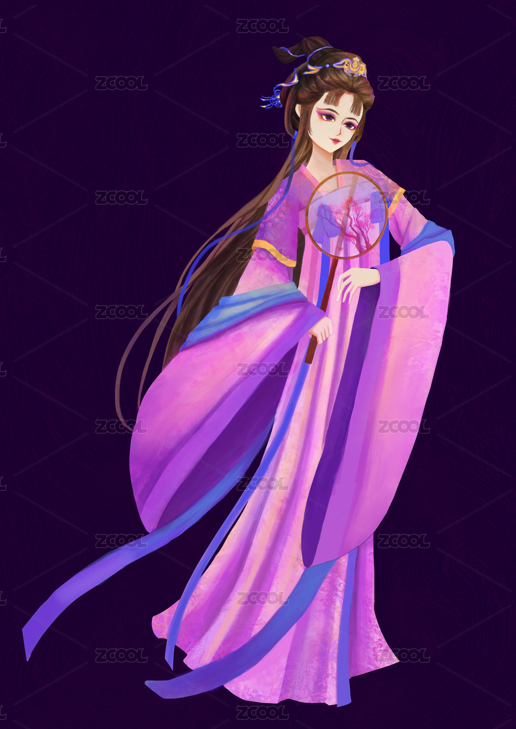水彩水墨古风女子美女紫色仙侠修仙女神立绘