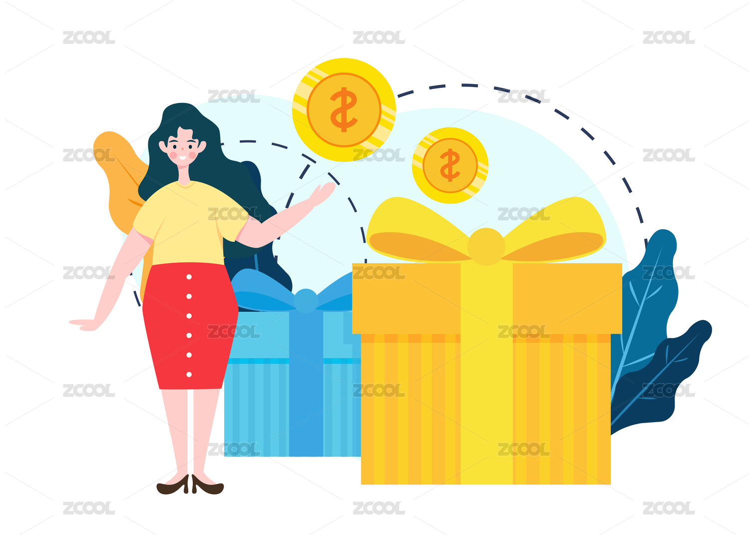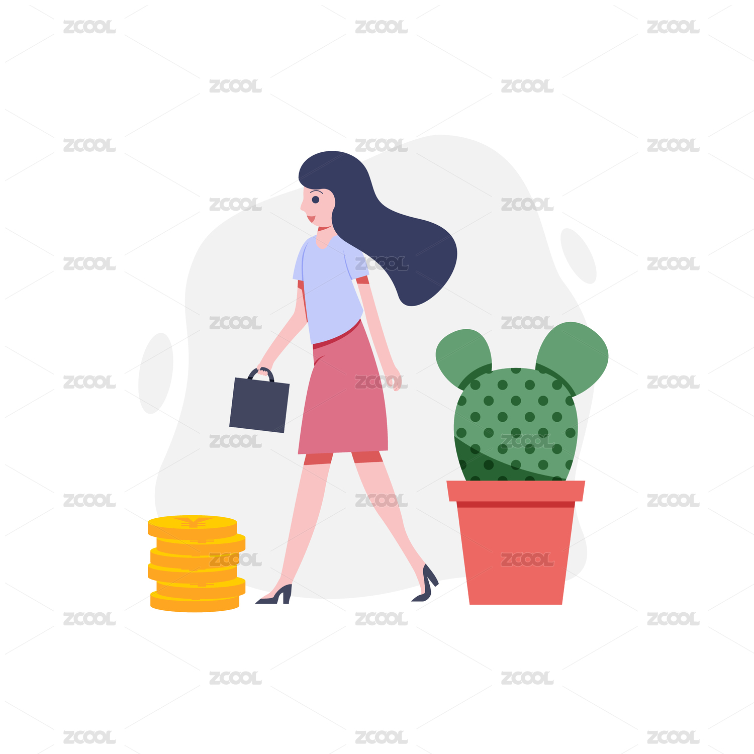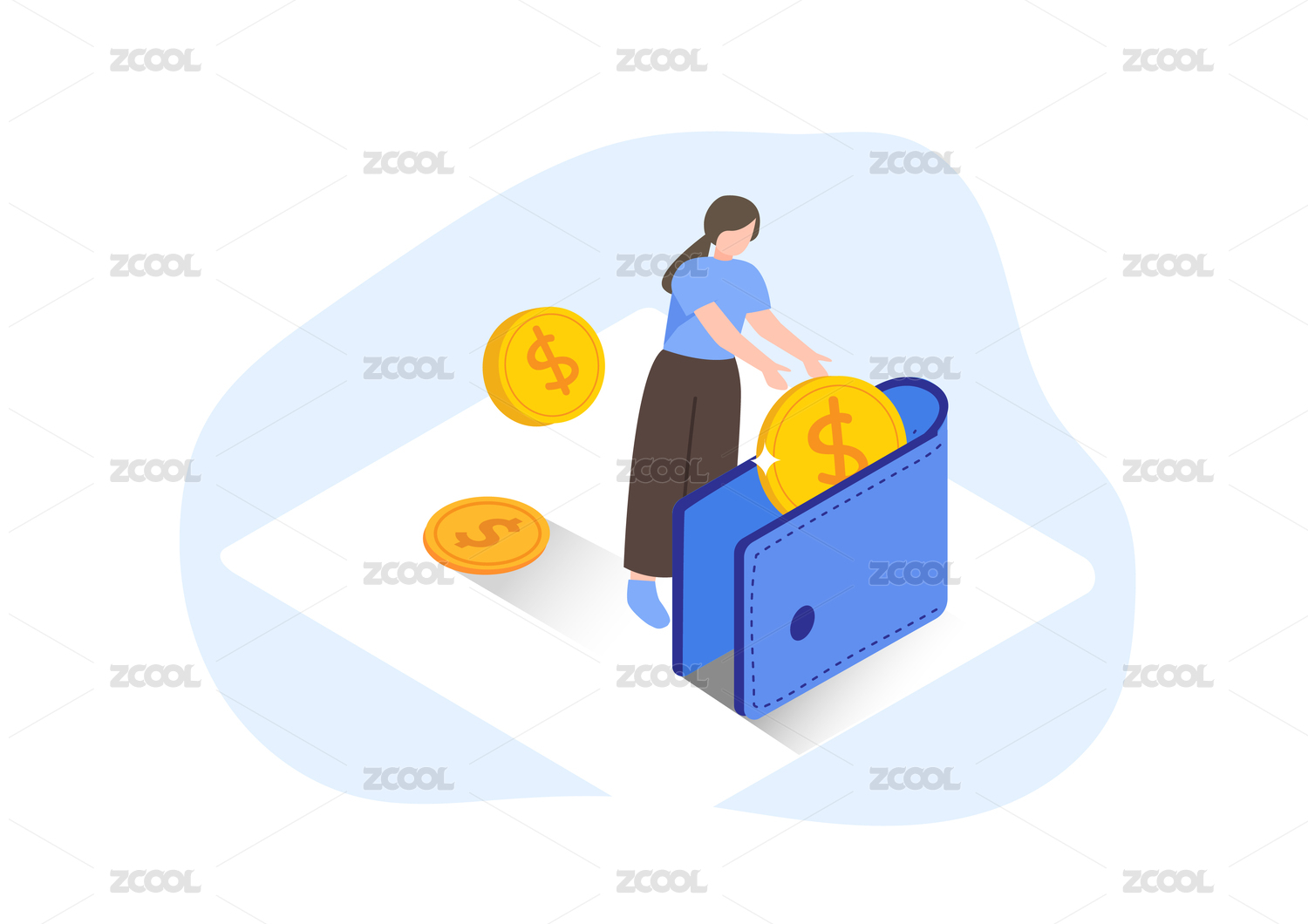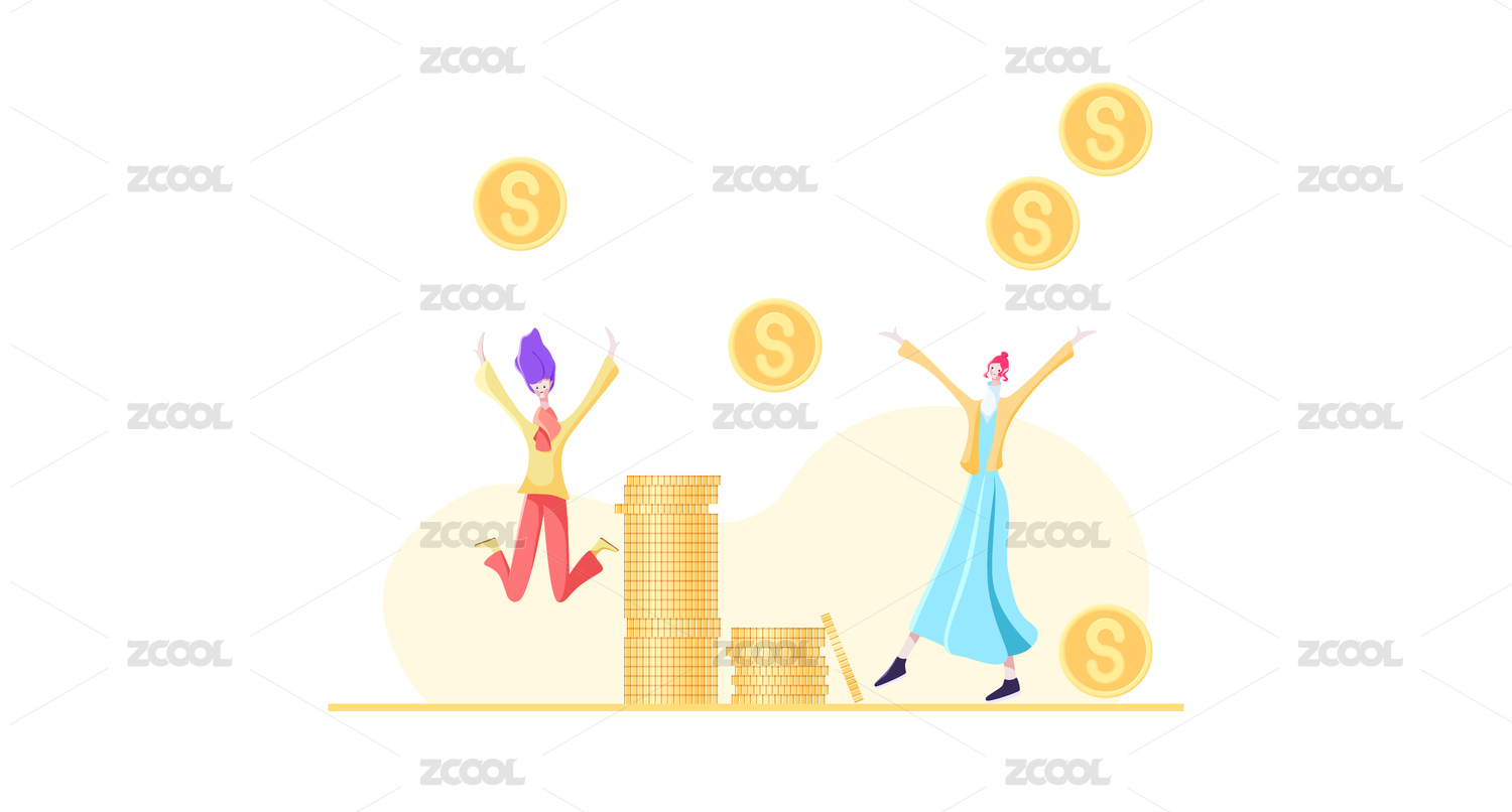卡通女人拿着金币插画