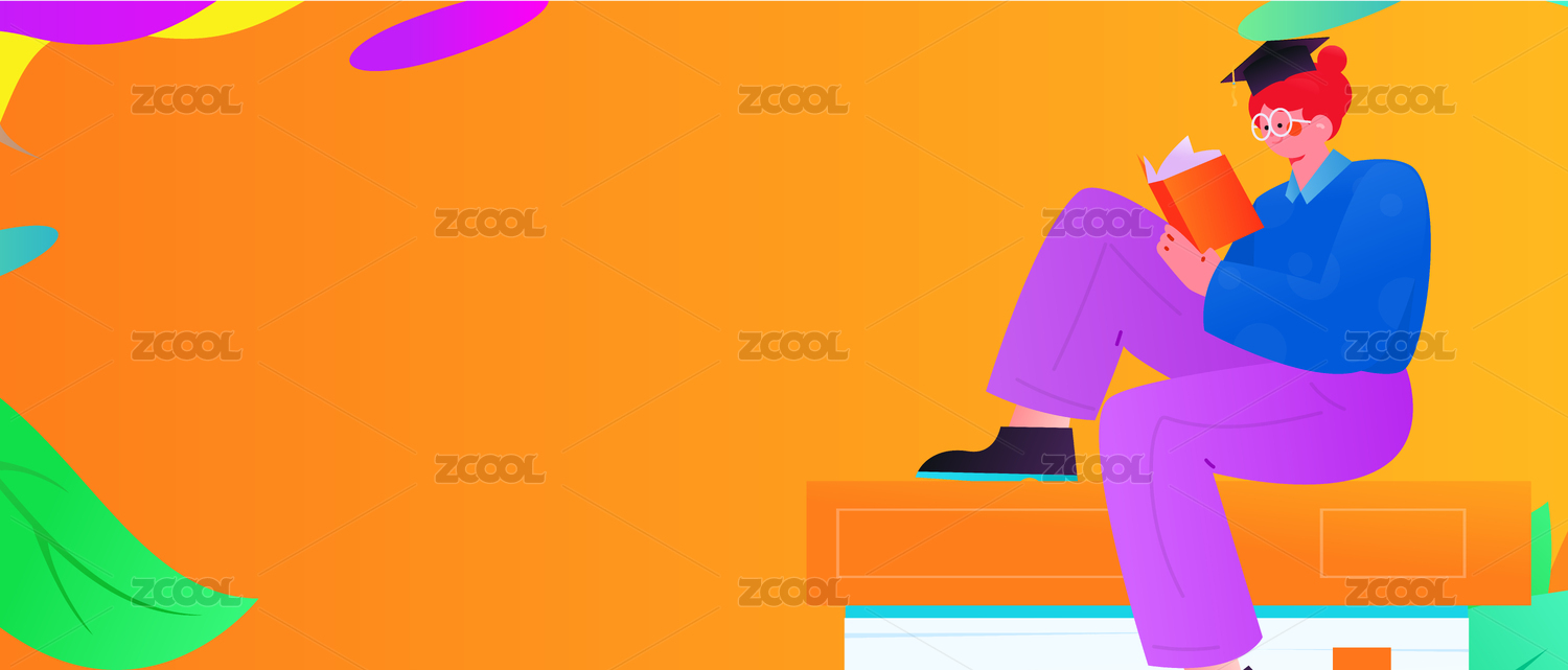 卡通开学季女孩坐在书上阅读学习插画