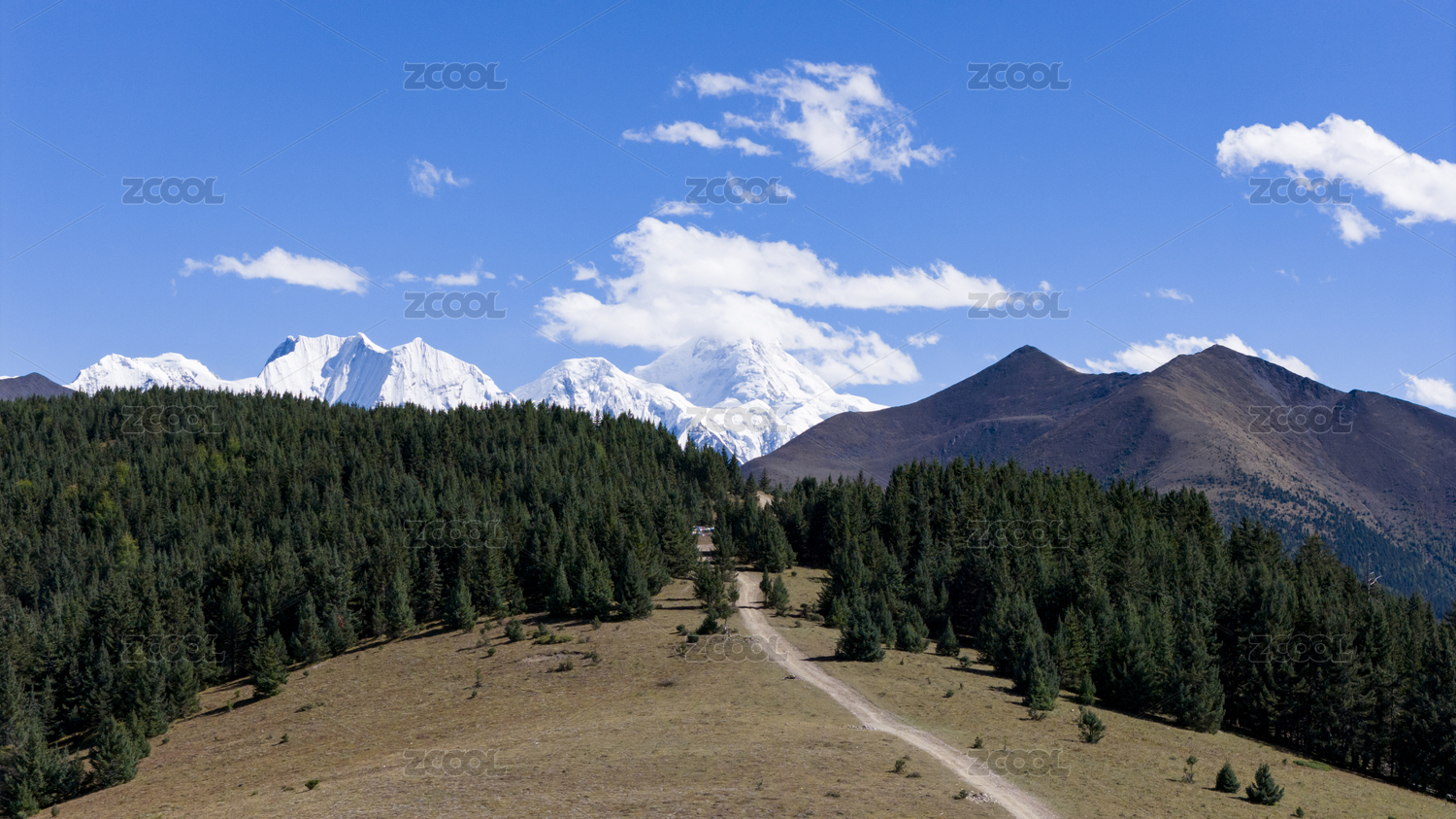 四川阿坝小金县结斯沟理小路森林蓝天白云
