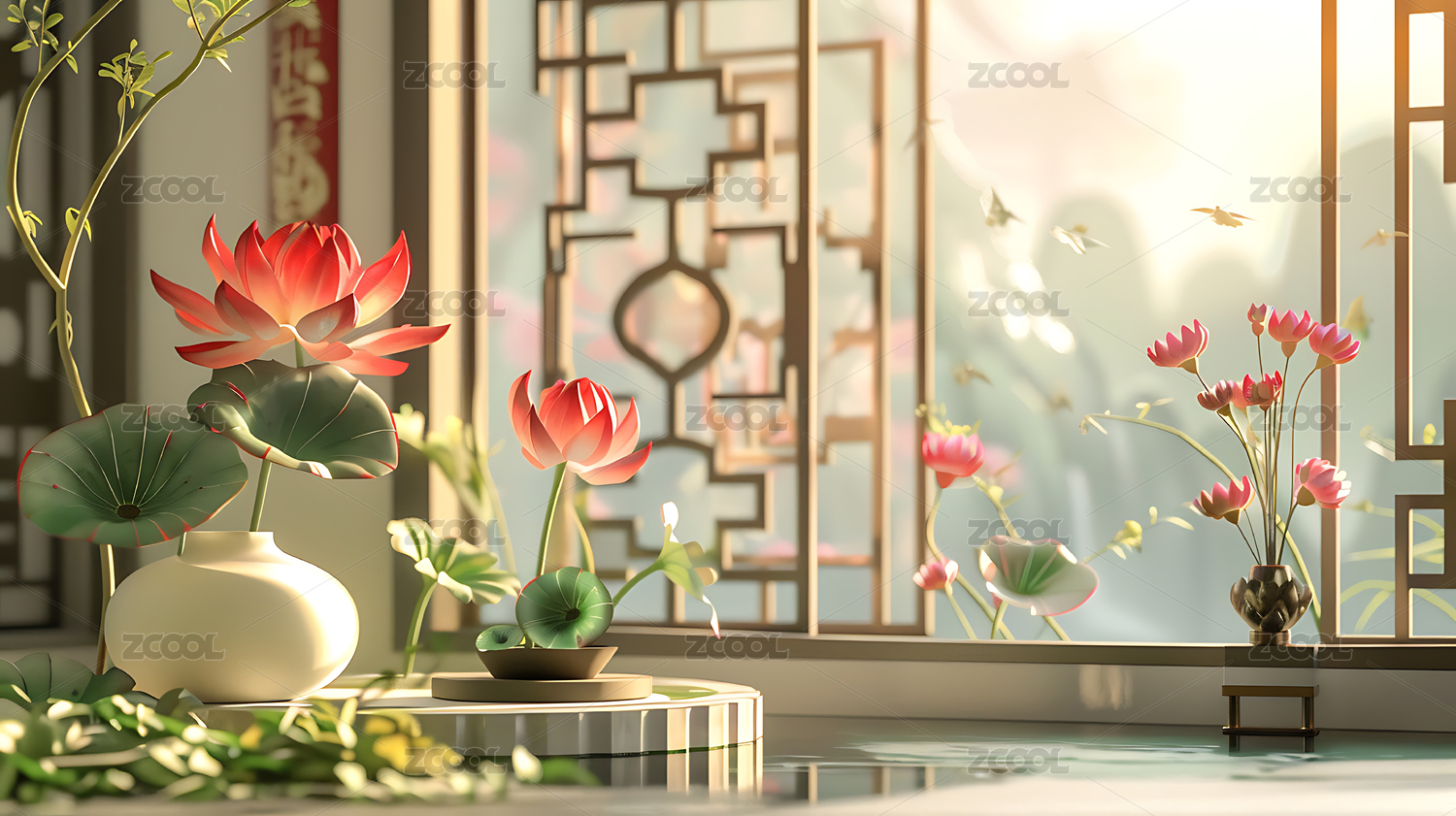 3d剪纸艺术荷花背景