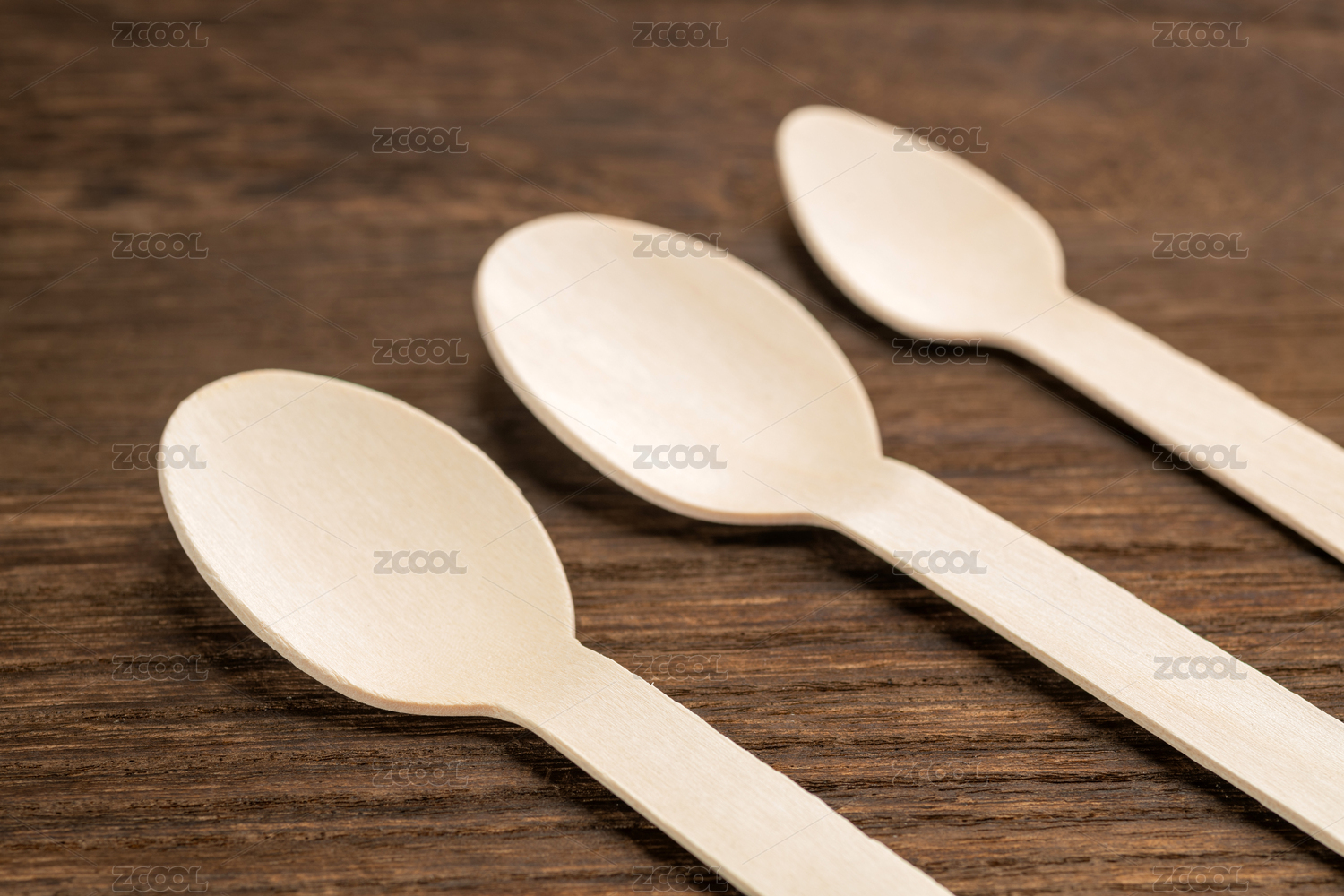 一次性木制餐勺特写木桌面背景