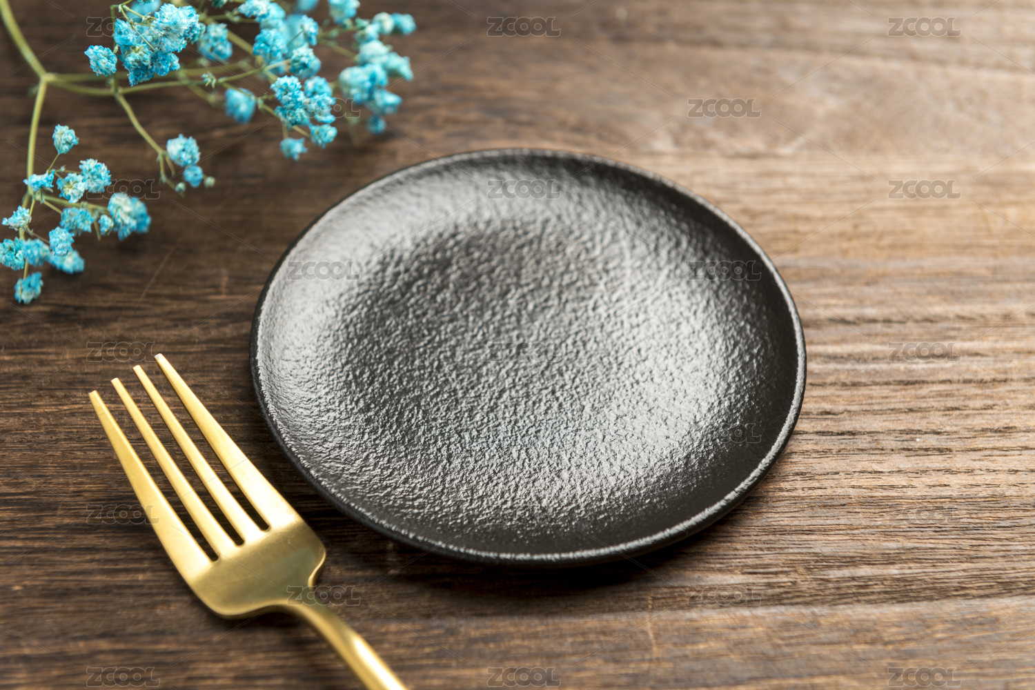 黑色圆盘和筷子刀叉特写光盘行动创意图片