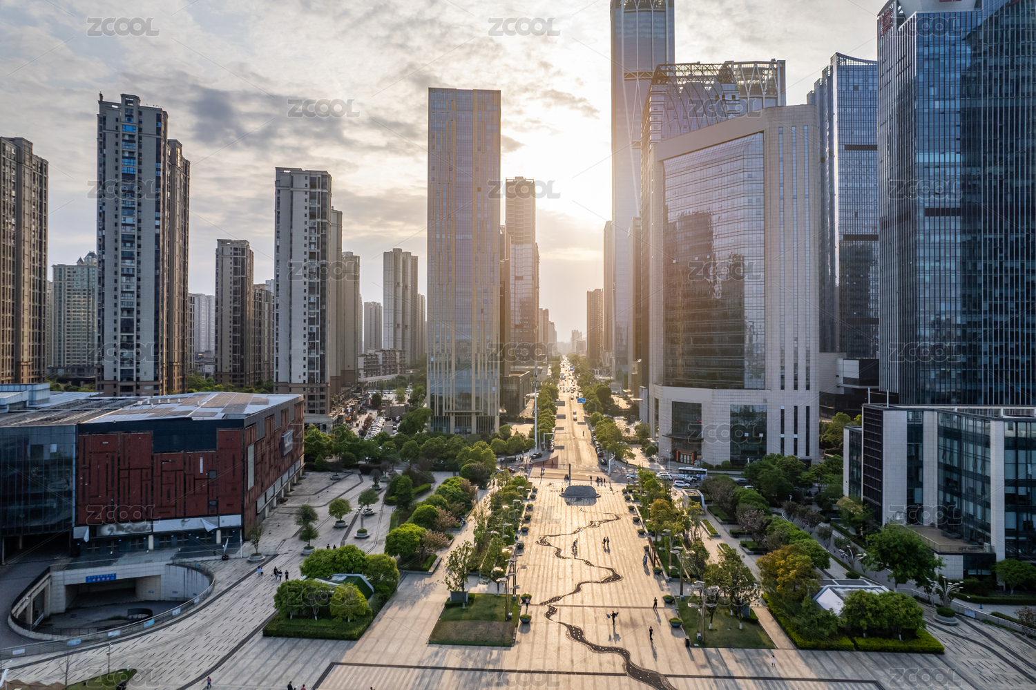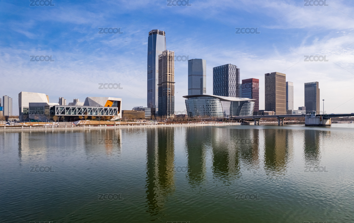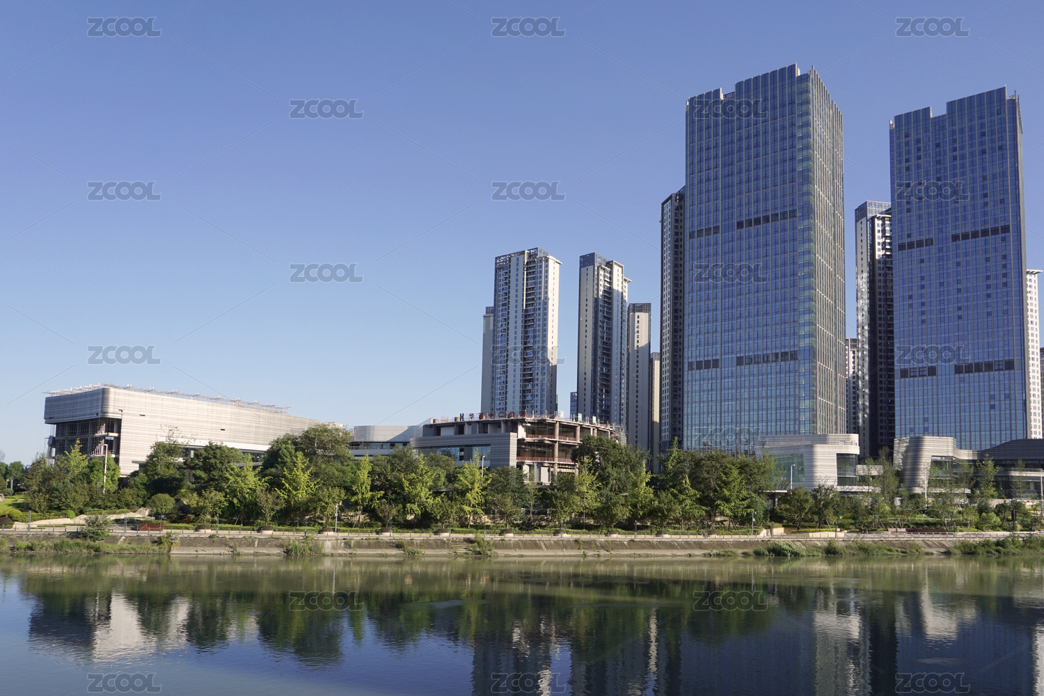 中国四川成都金融城锦江河心岛屿复地金融岛城市风光
