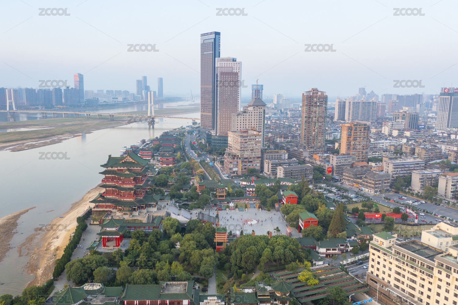 中国江西南昌滕王阁赣江两岸的建筑风光航拍