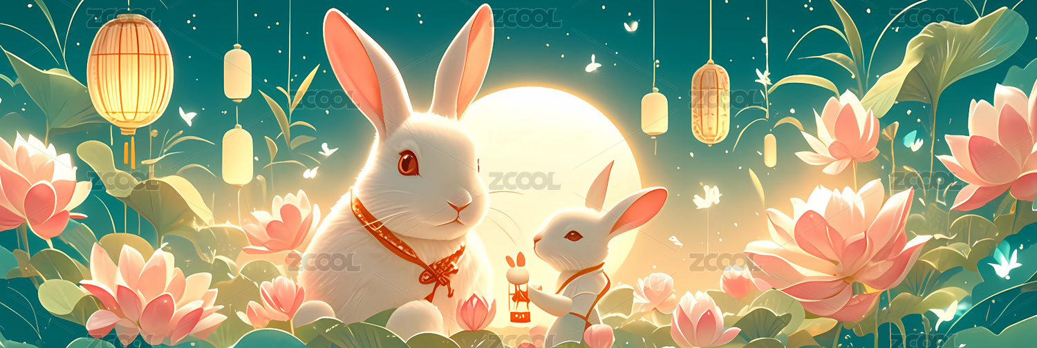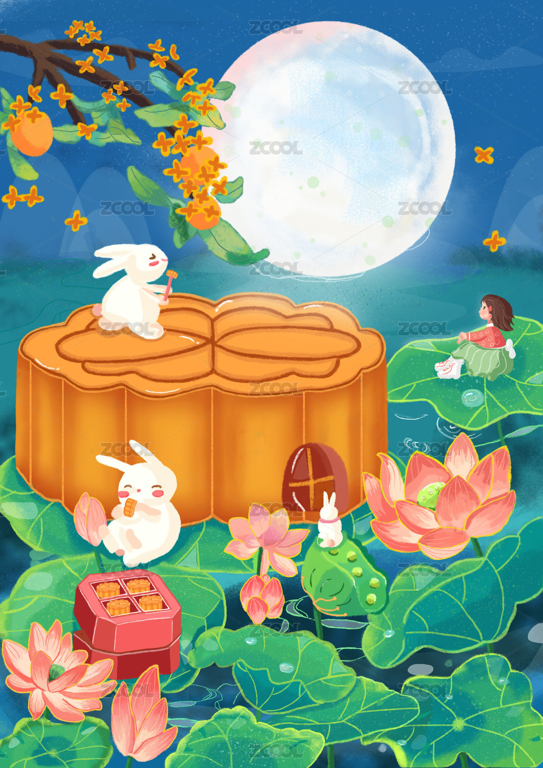 中秋,中秋节,节日,玉兔,月亮,月饼,花灯,灯笼,荷灯,荷花