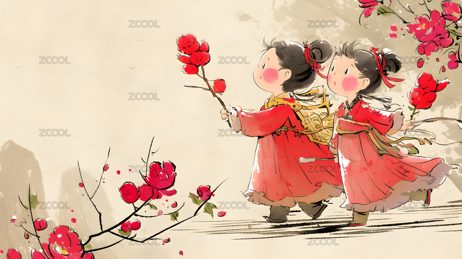 插画,艺术,中国文化,传统,可爱风,节日,儿童,童子,中国风,传统文化