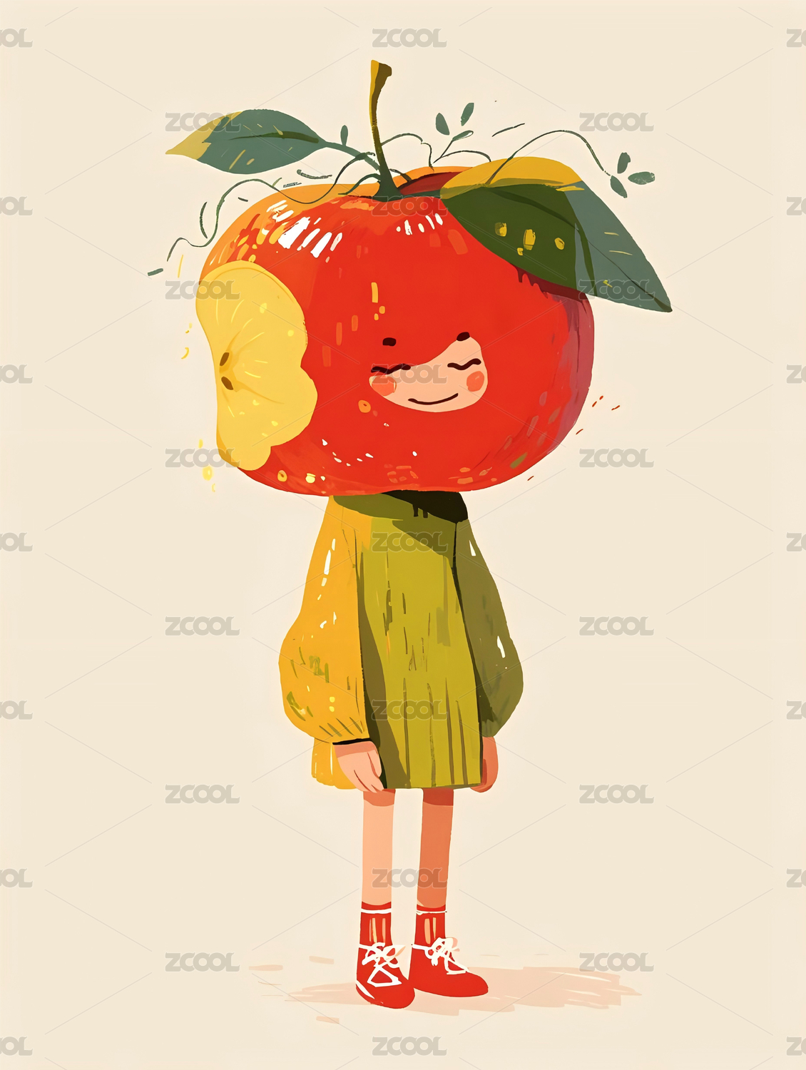 卡通可爱苹果水果人插画