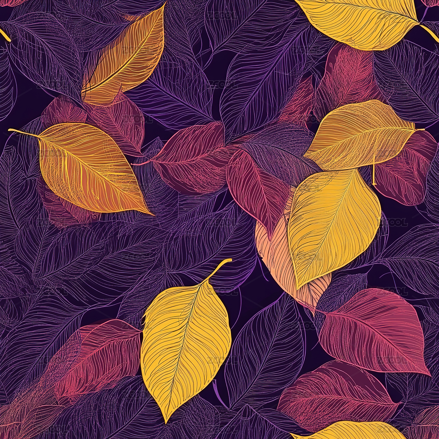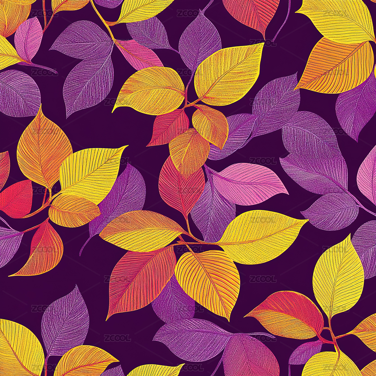 平铺彩色叶子红叶四方连续无缝循环扁平插画