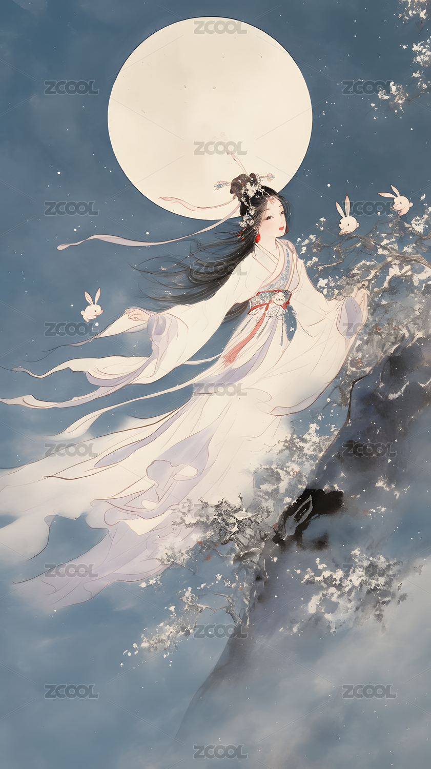 中秋节嫦娥主题壁纸插画