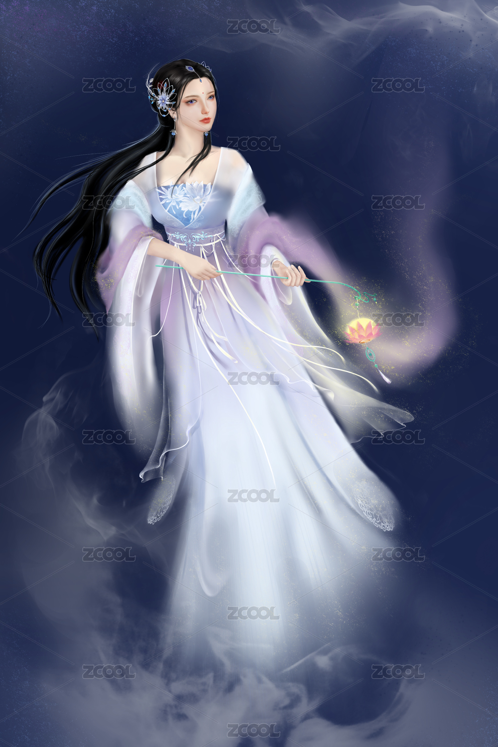 步步生莲古风女子插画