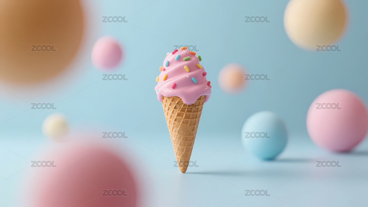 冰淇淋,甜筒,卡通,3D,模型,凉爽,美味