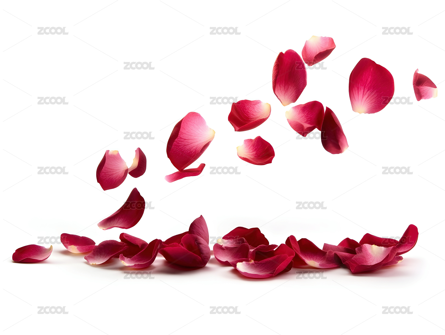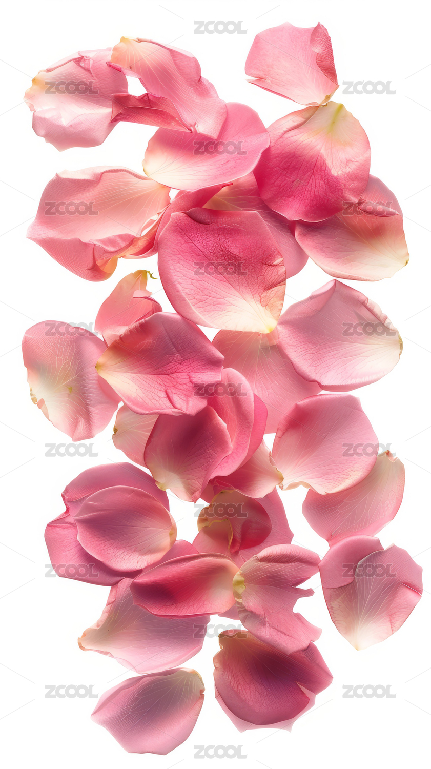 散落在白底上的粉色玫瑰花瓣
