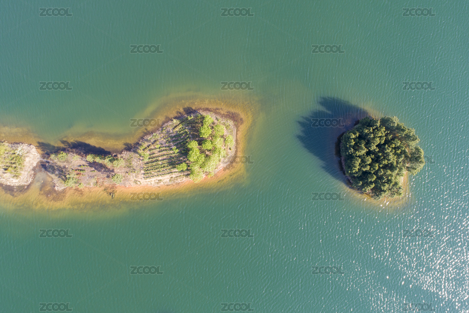 航拍中国安徽宣城郎溪县龙须湖鸟岛
