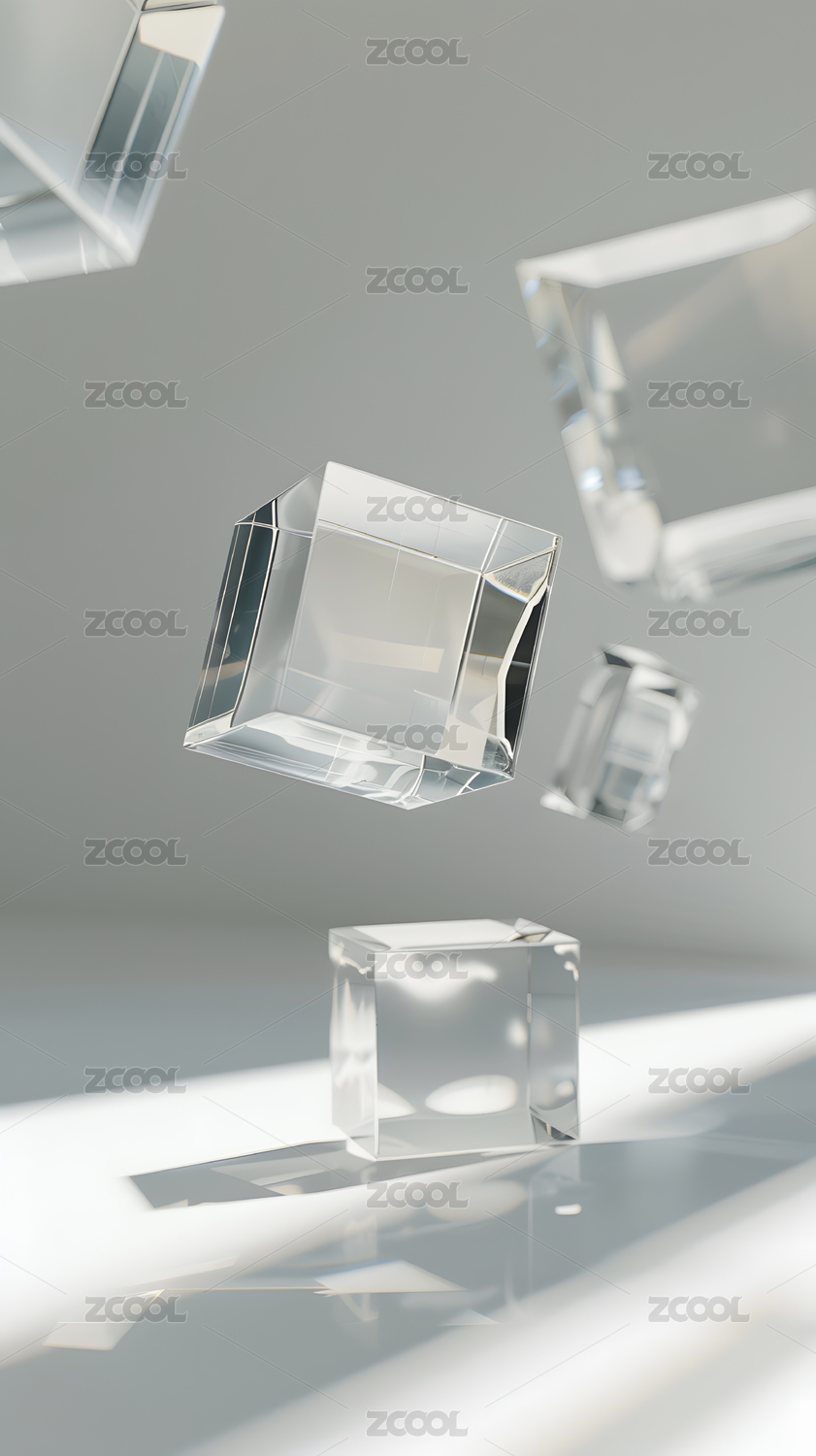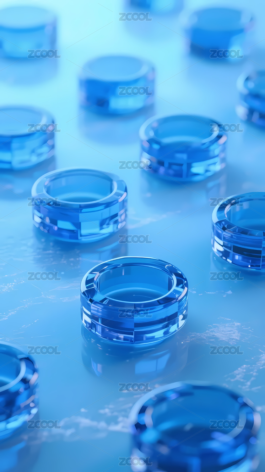 科技抽象分格透明晶体圆环圆台器皿背景插画