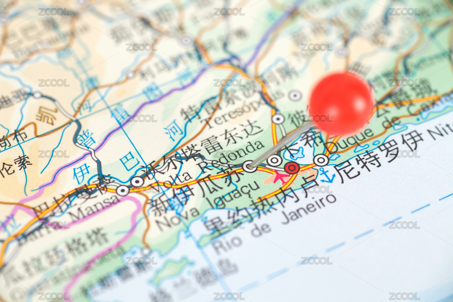 大头钉标注巴西城市新伊瓜苏在地图上的位置