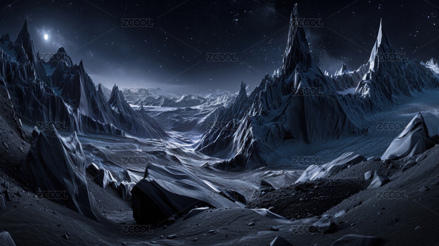 深蓝色星球上的山脉