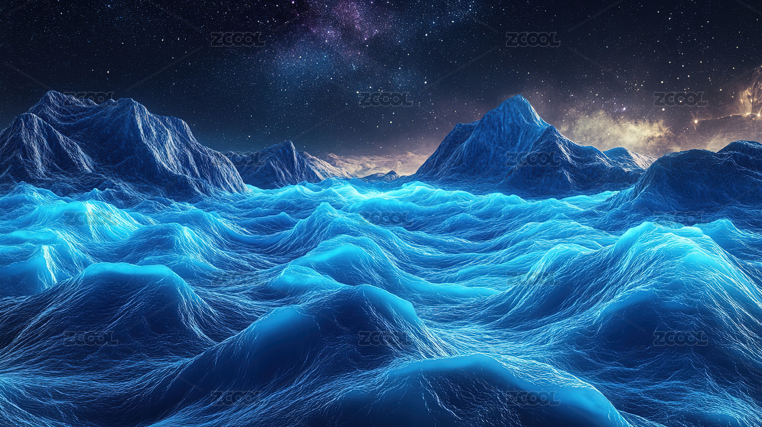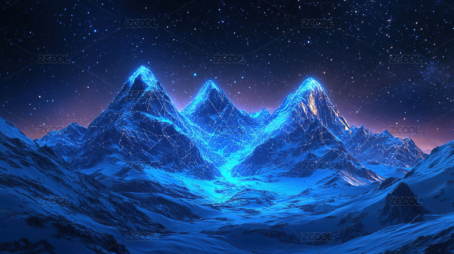 星空下的雪山和抽象图案
