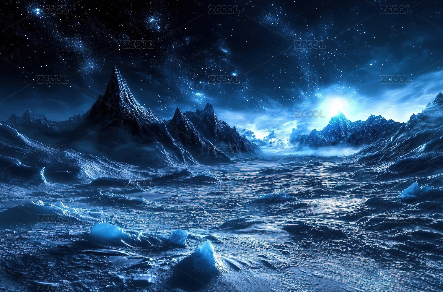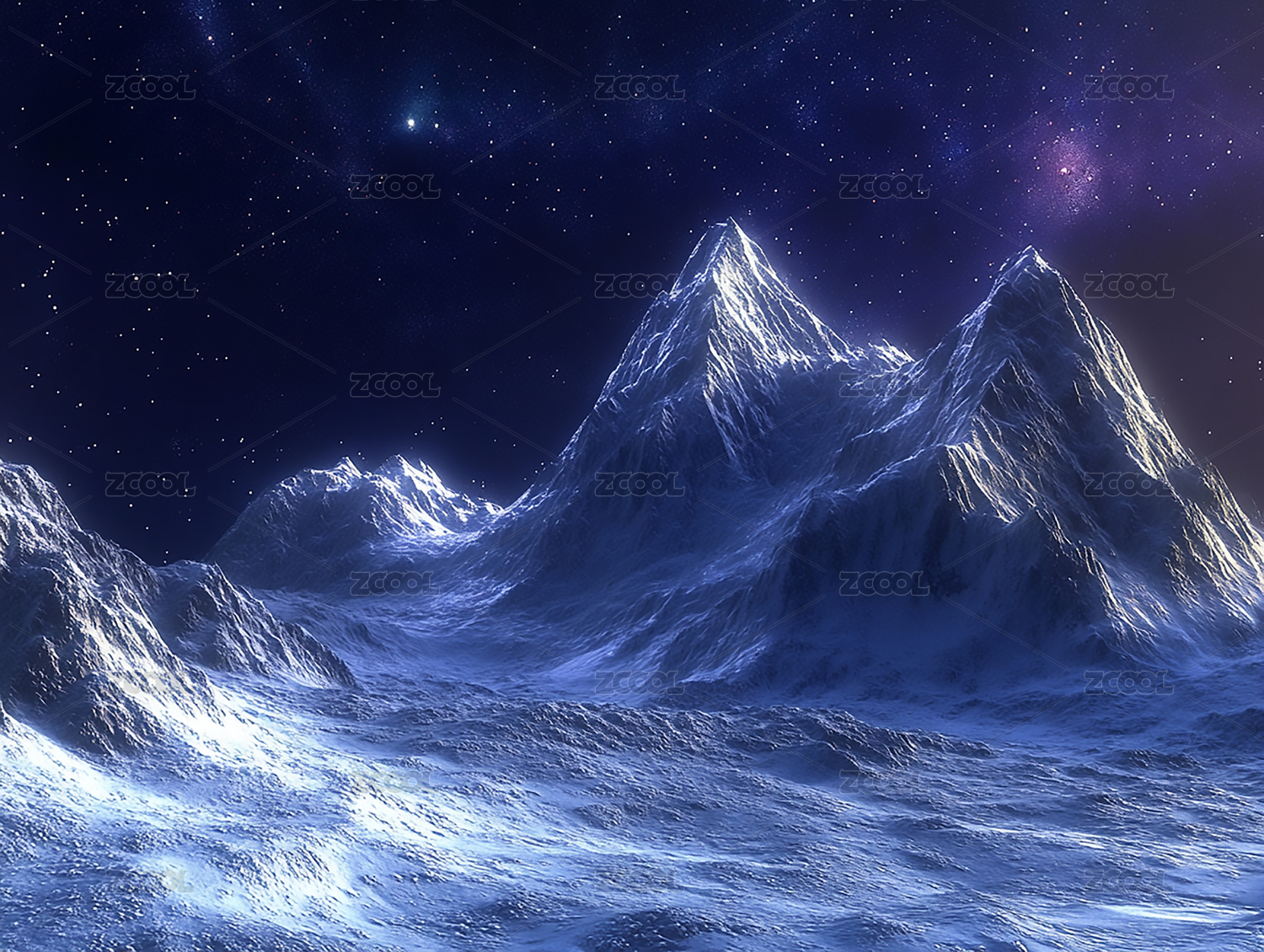 星空下的雪山与