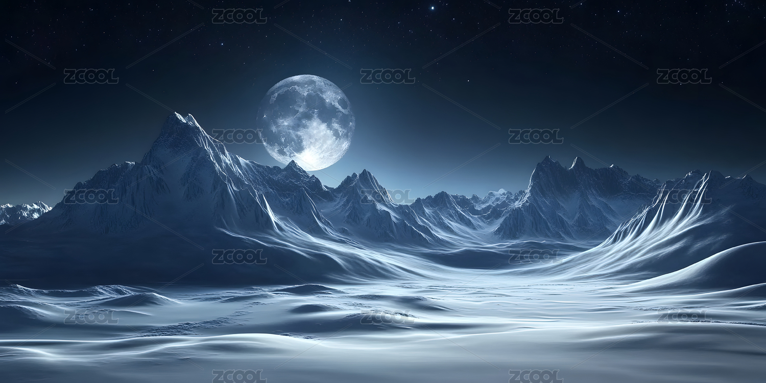 夜幕下白雪皑皑的群山景色