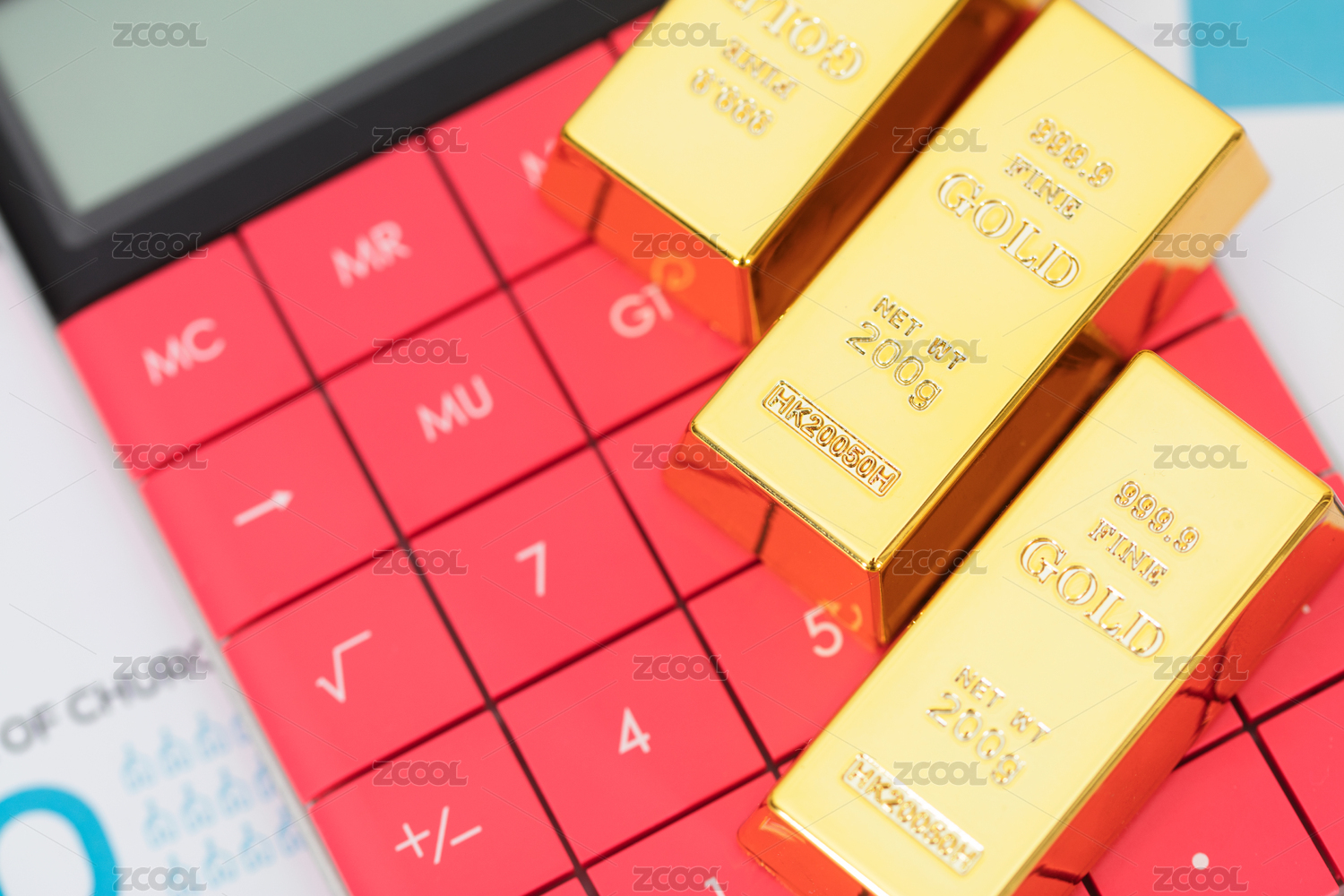 金条在计算器上计算器在纸质文件上